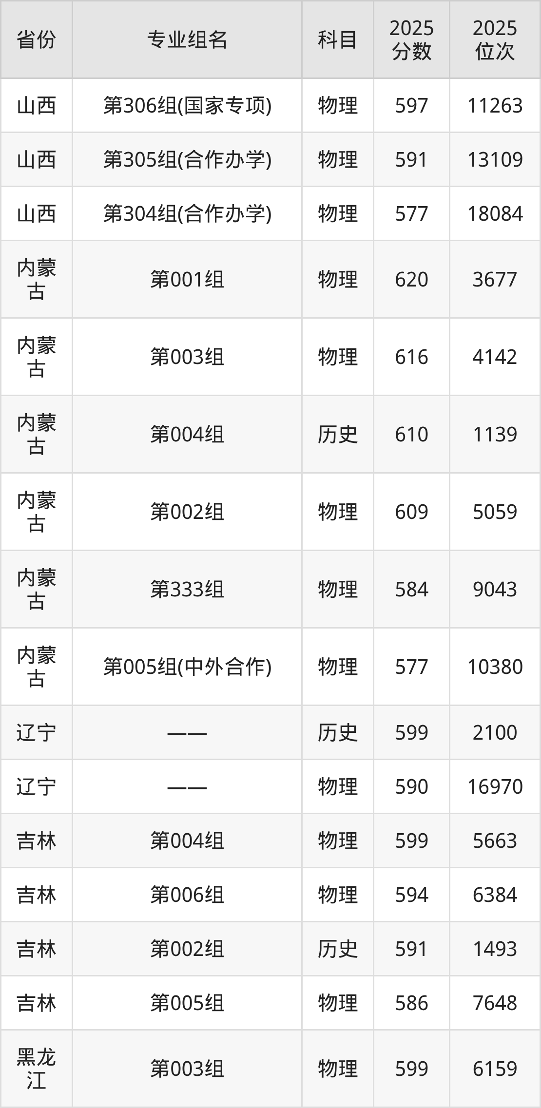 下面是北京化工大学2025年录取分数线一览表: