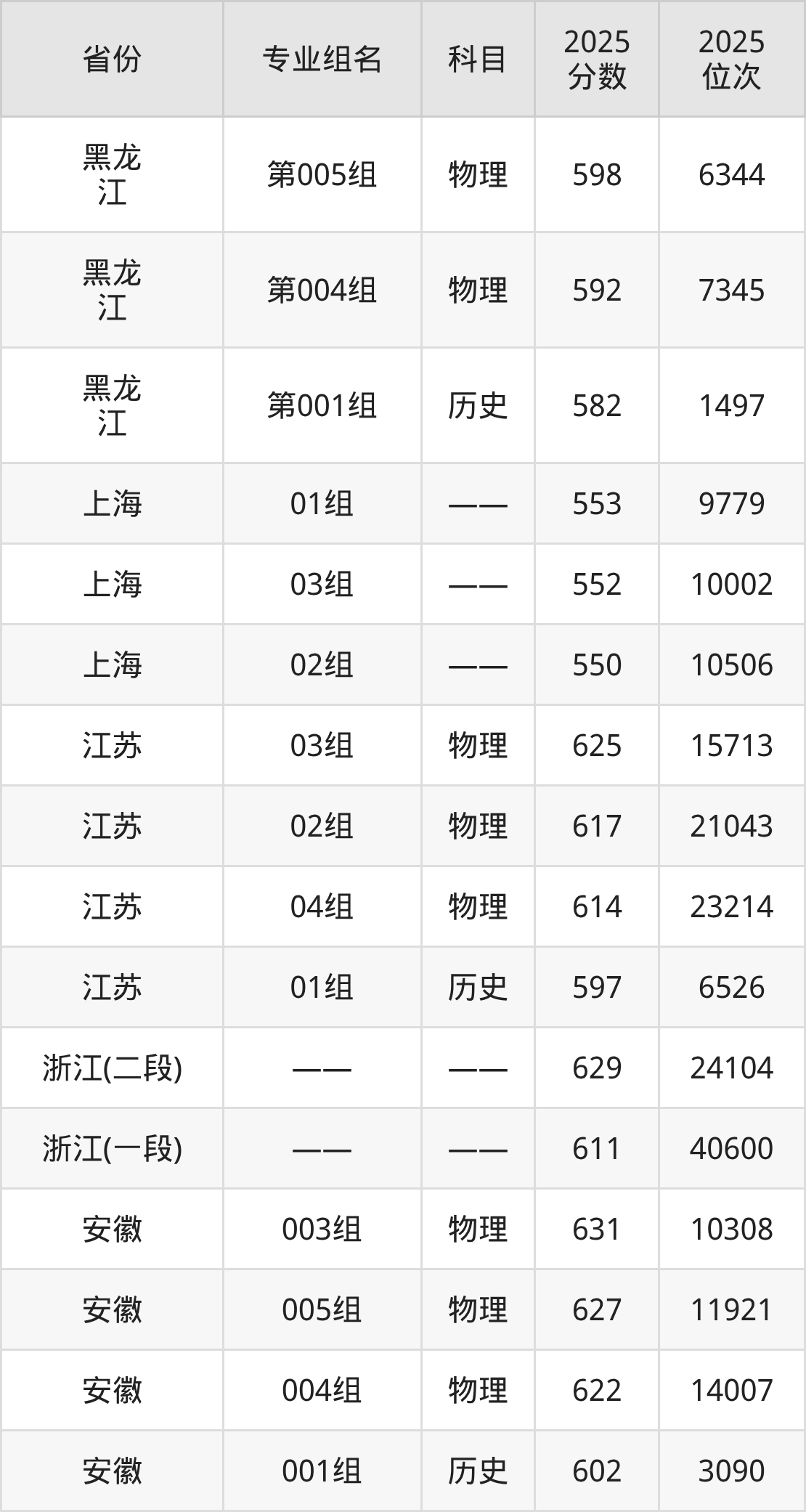 04组 624分、02组 618分、01组 617分、03组 615分、05组(中外合办) 592分。