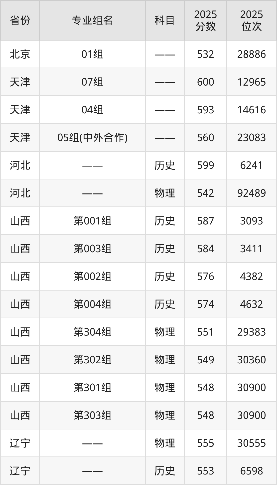 历史类:第07组(国家专项) 573分、第01组 571分、第04组 570分、第02组 569分、第03组 568分、第06组(国家专项) 563分、第05组(中外合作) 544分。