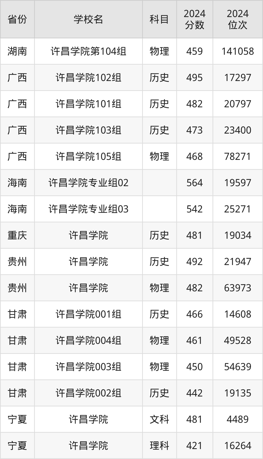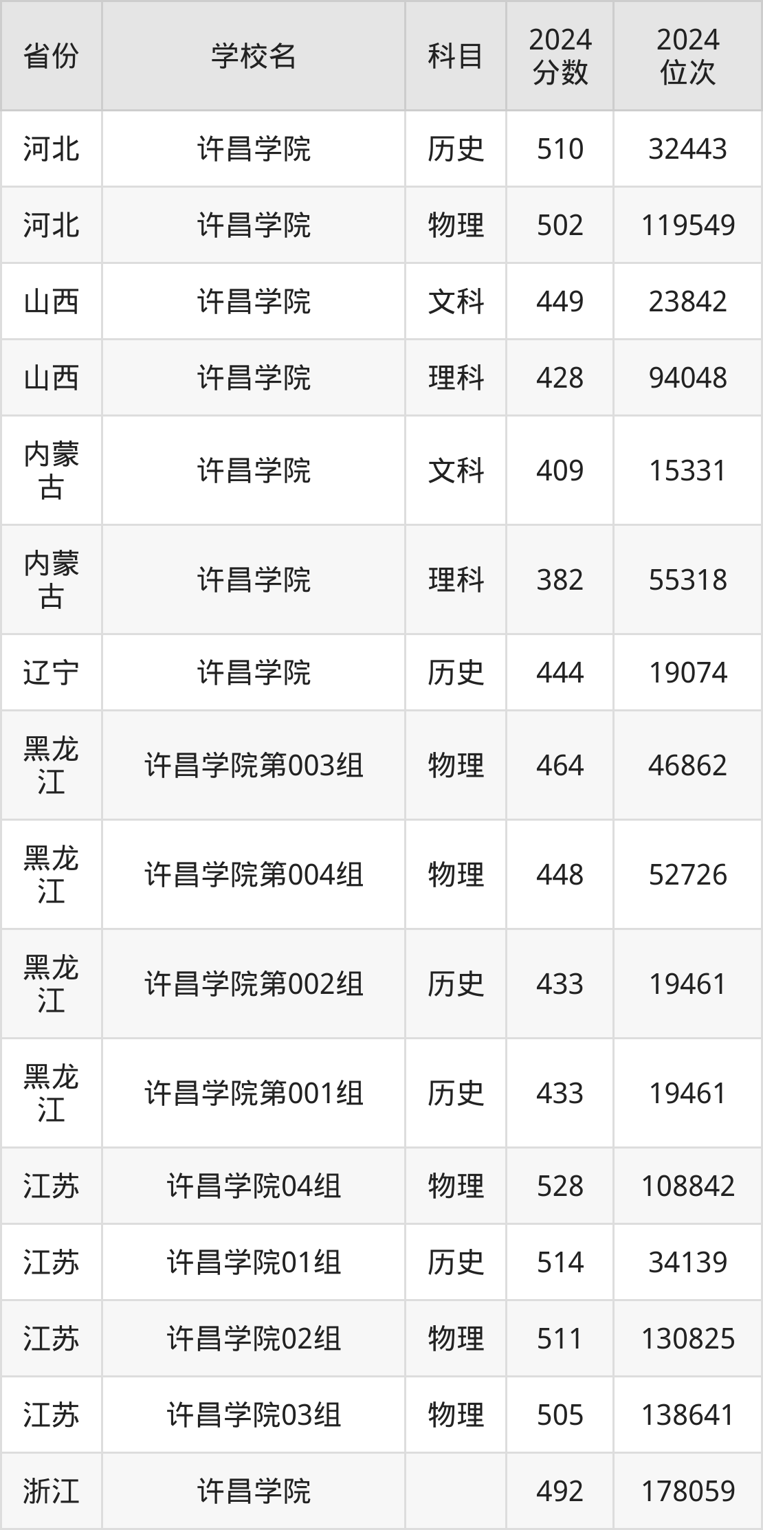 以2024年数据作为参考依据,整理河南省内、省外考许昌学院要多少分。