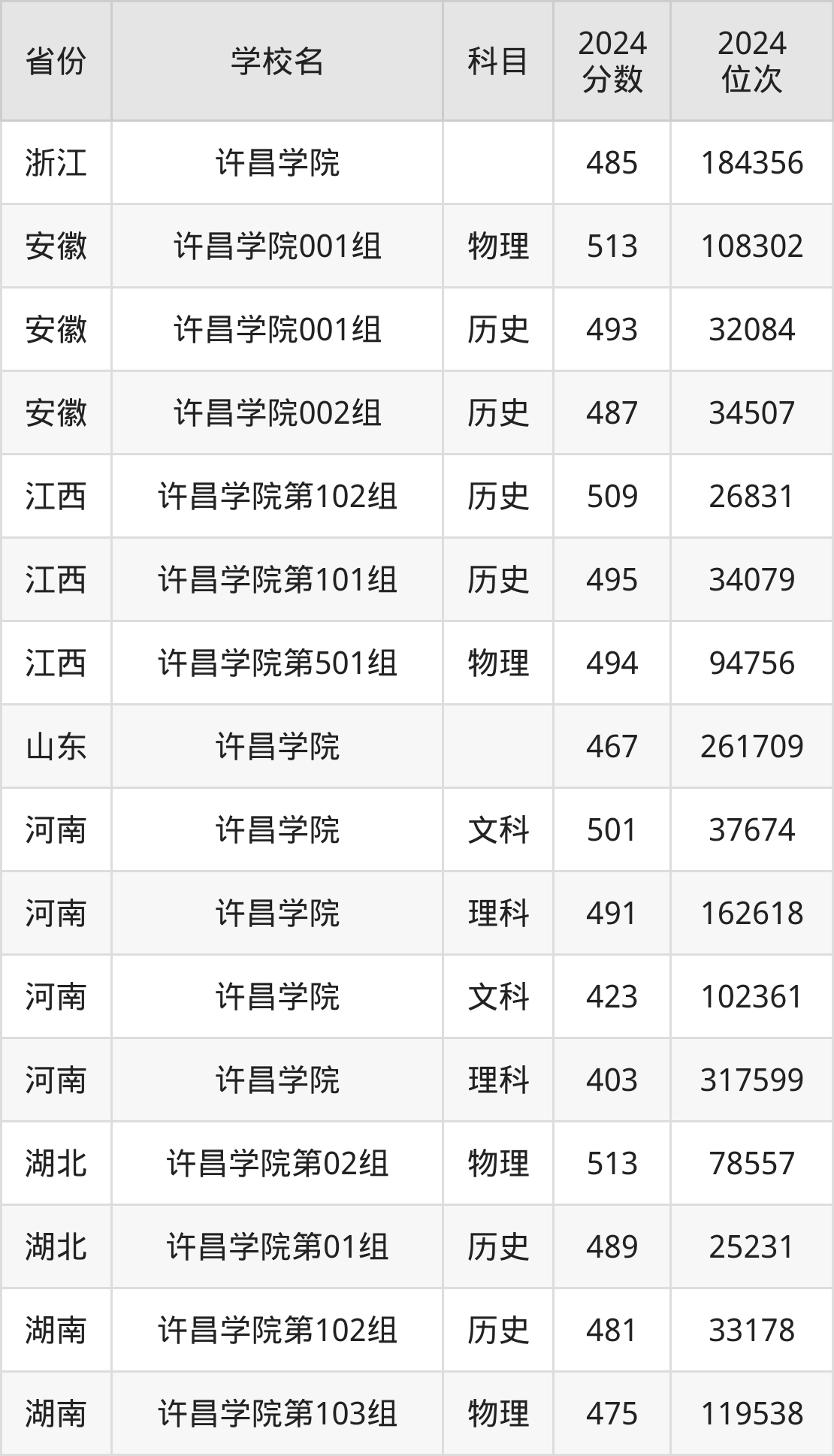 由于全国数据较多,因此本文仅展示许昌学院省内近三年录取分数线汇总。