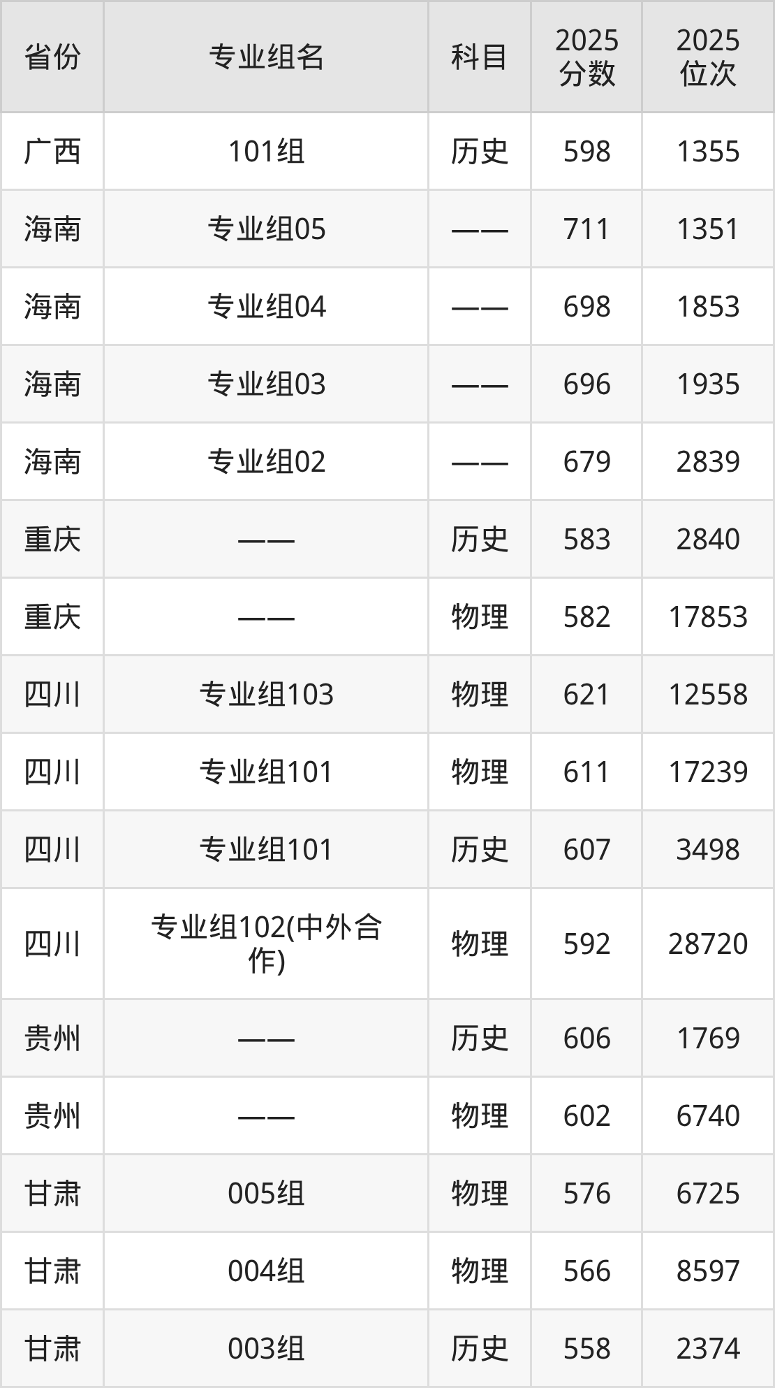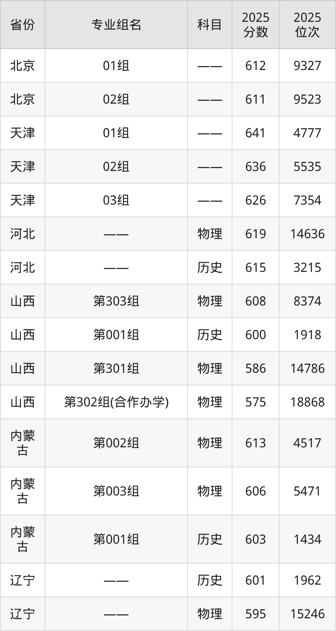 下面是深圳大学2025年录取分数线一览表:
