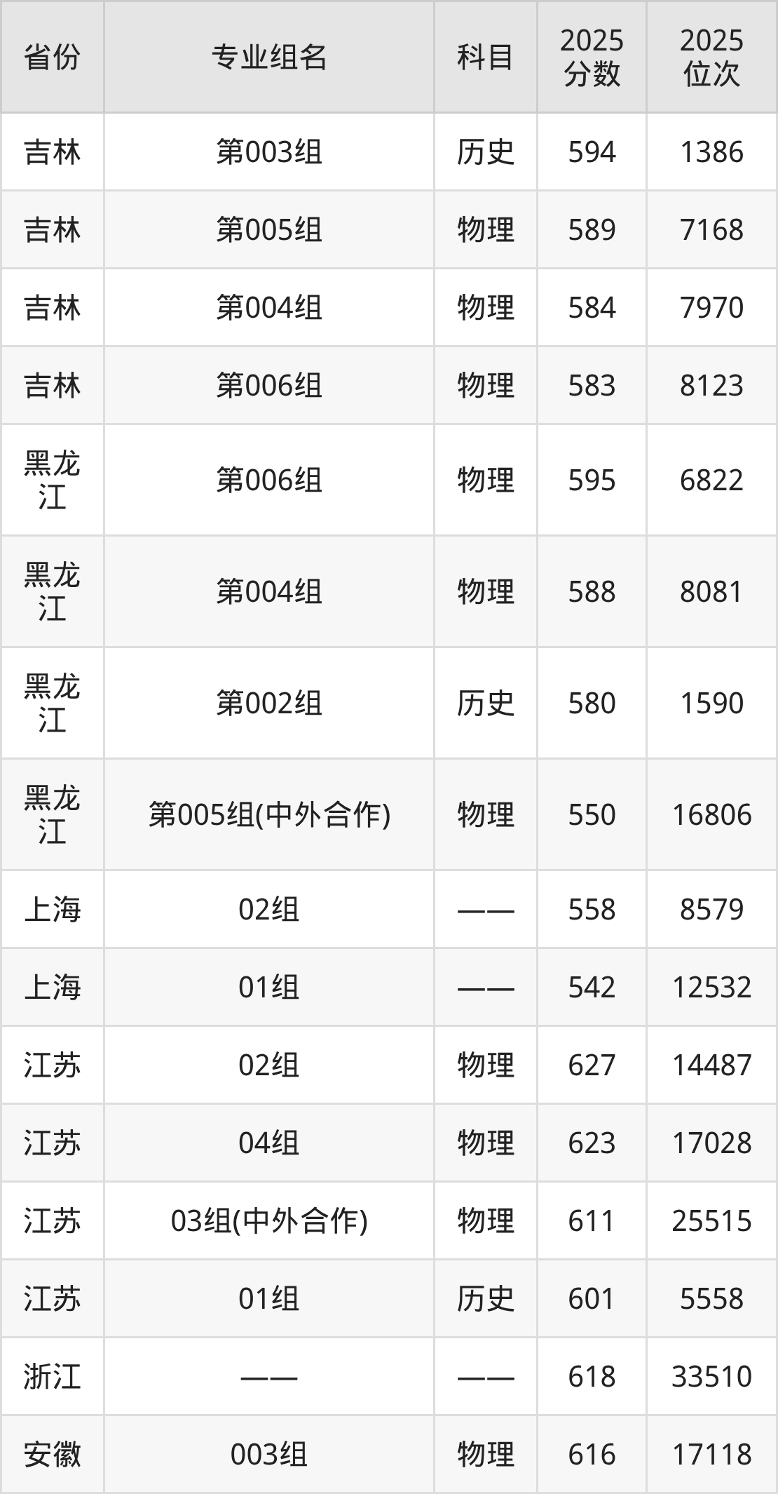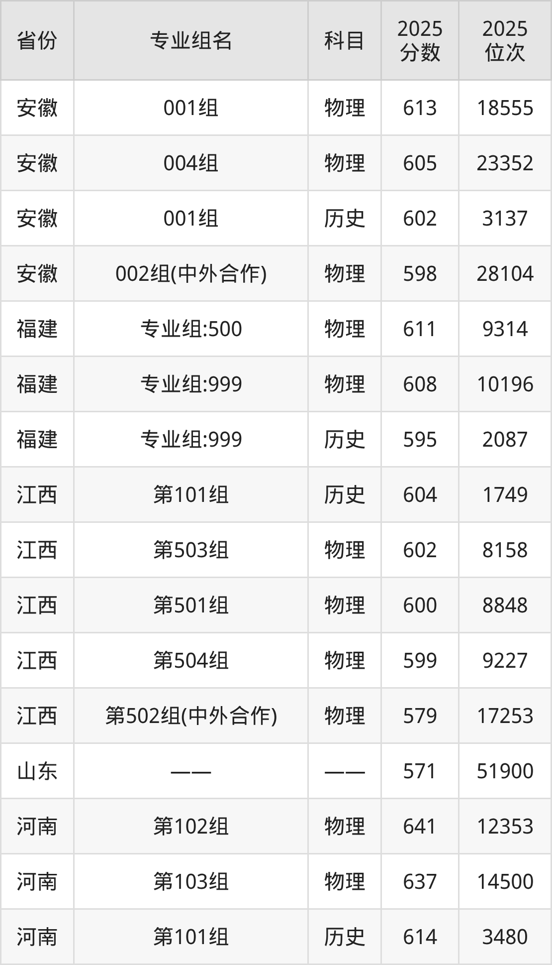 物理类:233组 625分、230组 622分、223组 618分、225组 616分、226组 616分、240组 615分、241组 613分、229组 611分、236组 609分、221组 608分(篇幅有限,仅展示10条数据)。