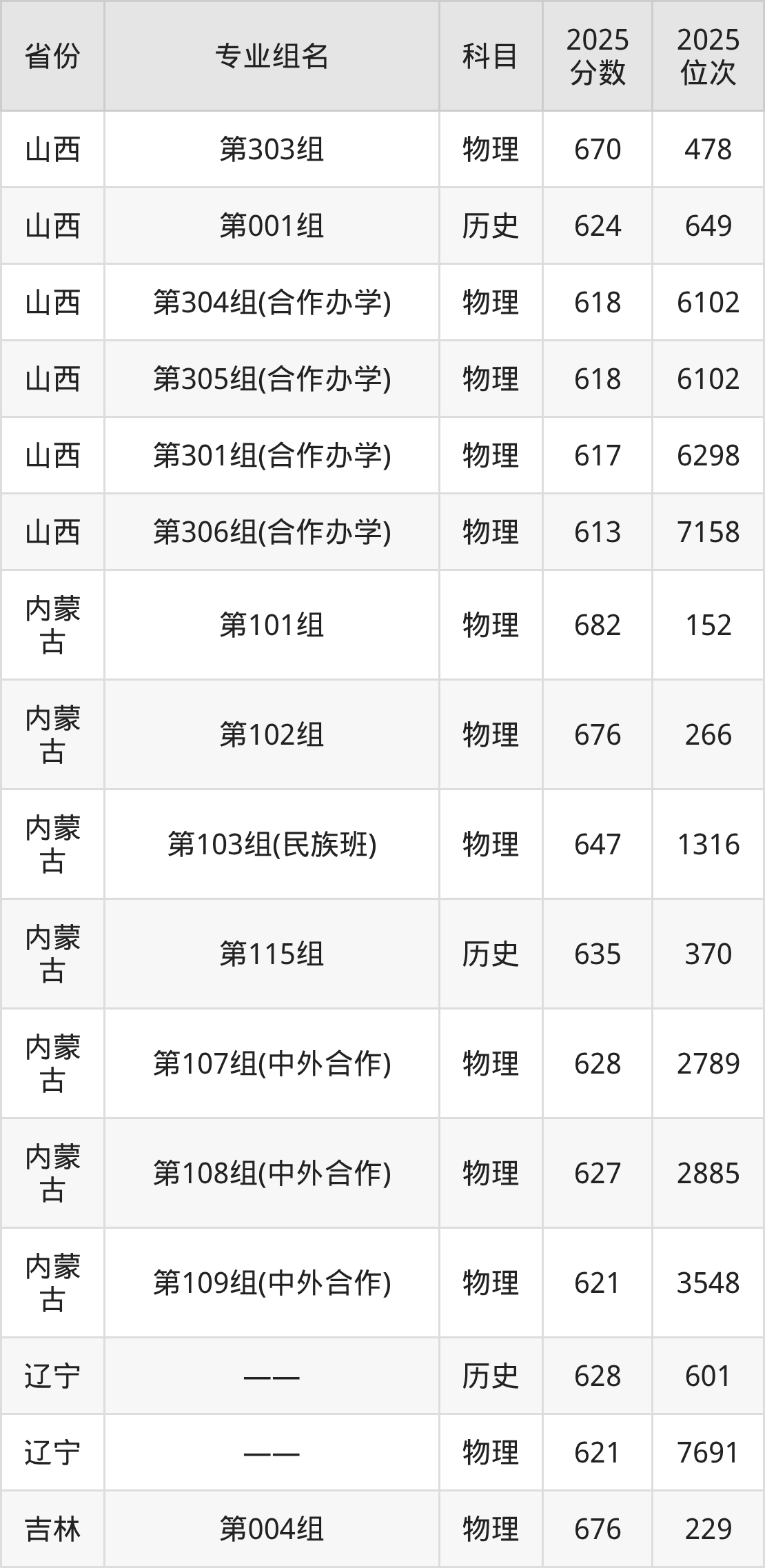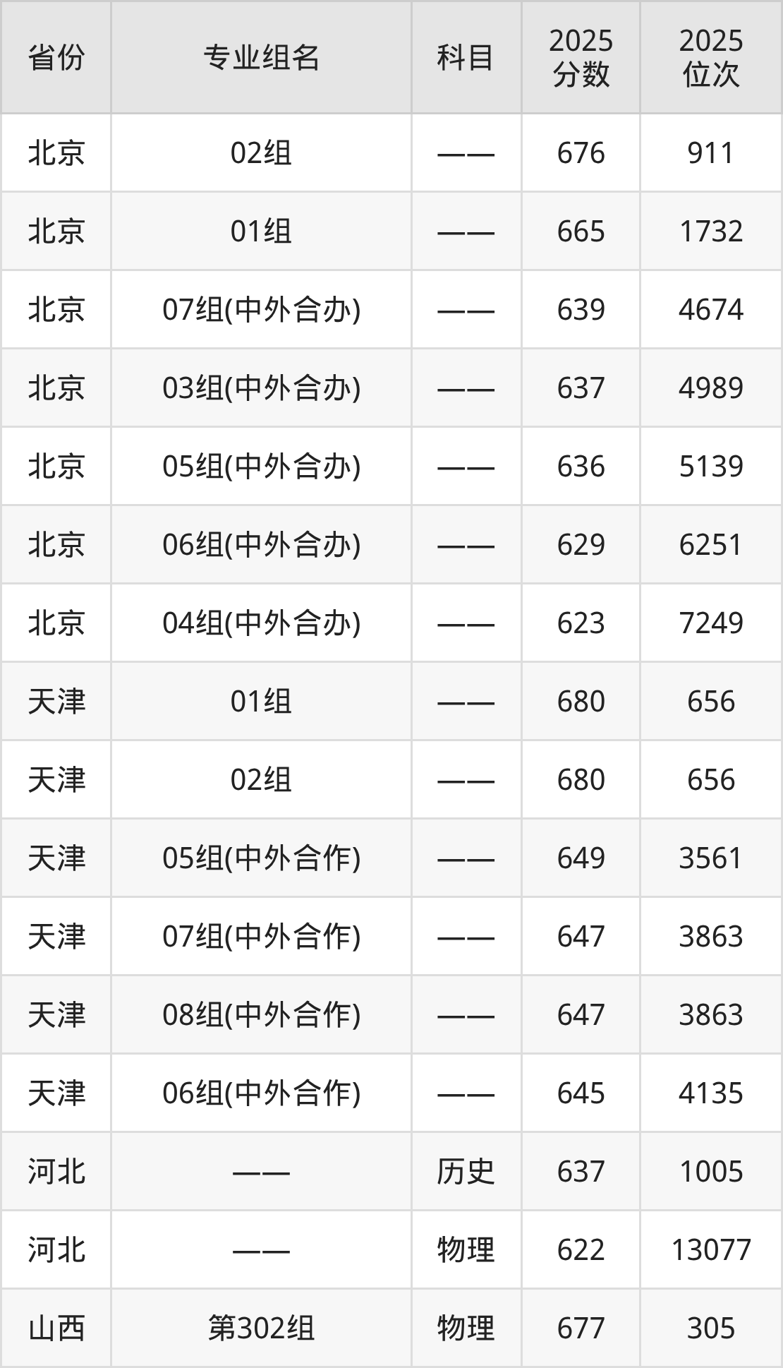 下面是哈尔滨工业大学2025年录取分数线一览表: