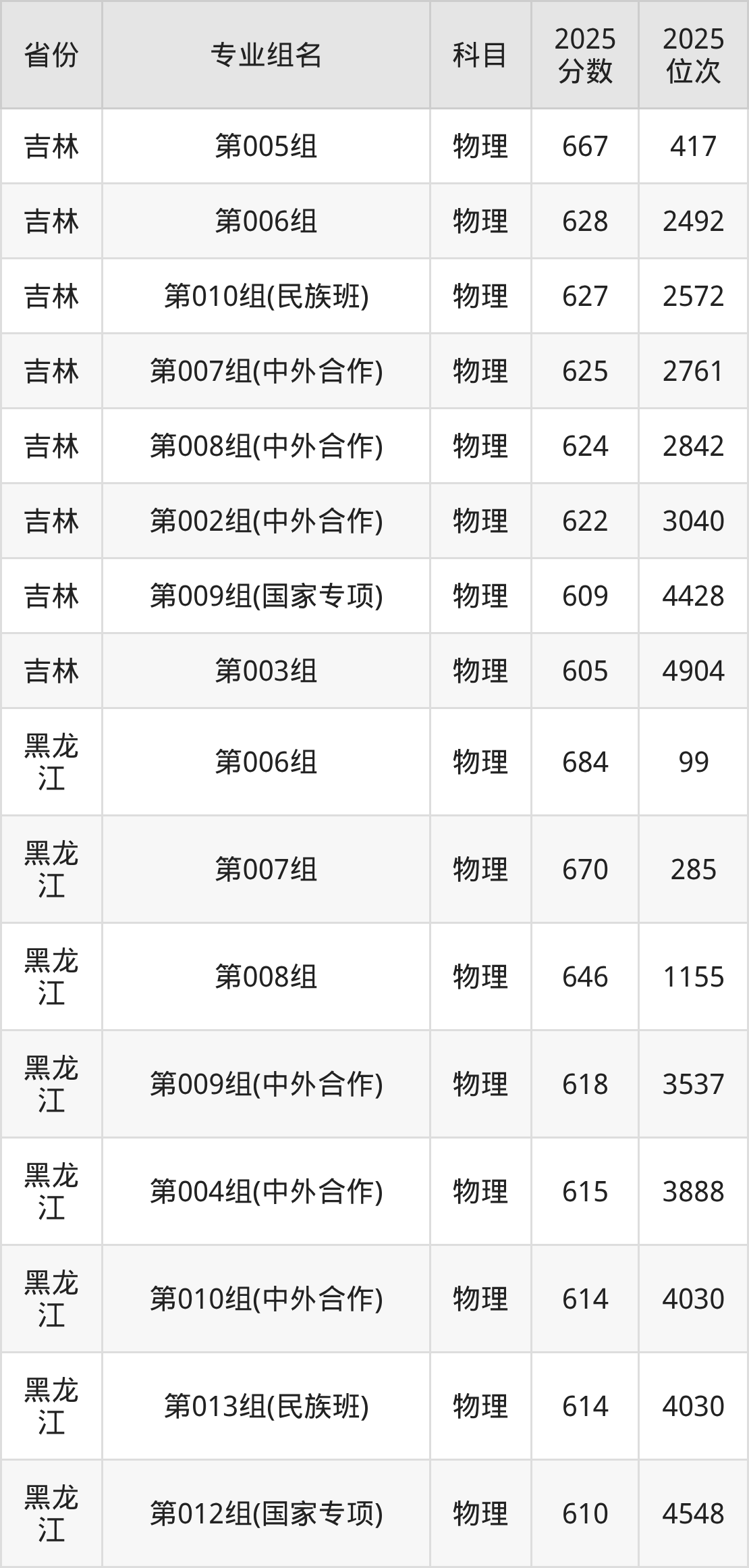 2025年哈尔滨工业大学在黑龙江省内录取最低分数线是601分,录取最低的是物理类第005组(中外合作);录取分数线最高是684分,对应的是物理类第006组。
