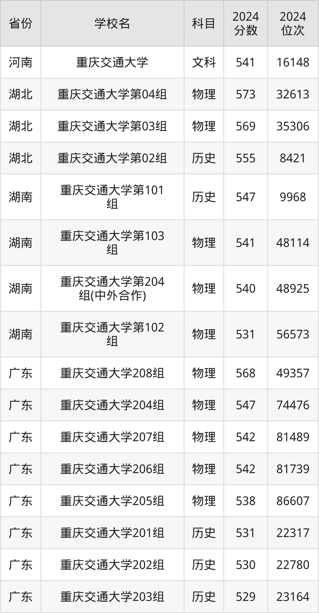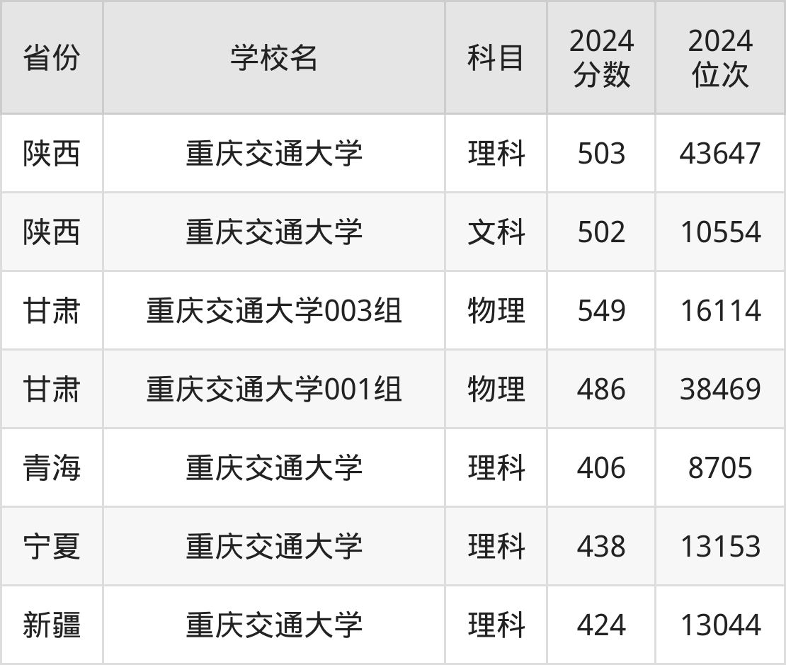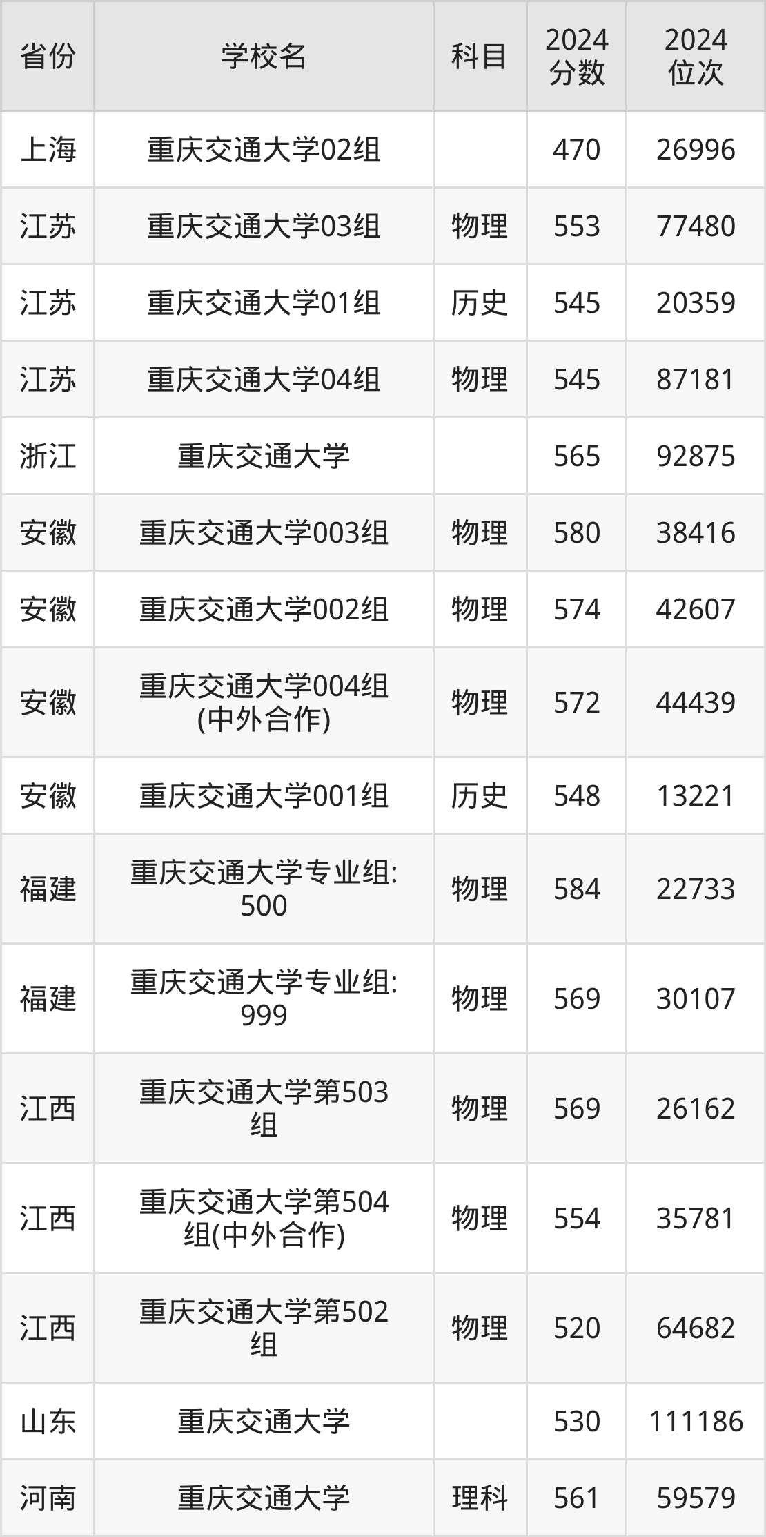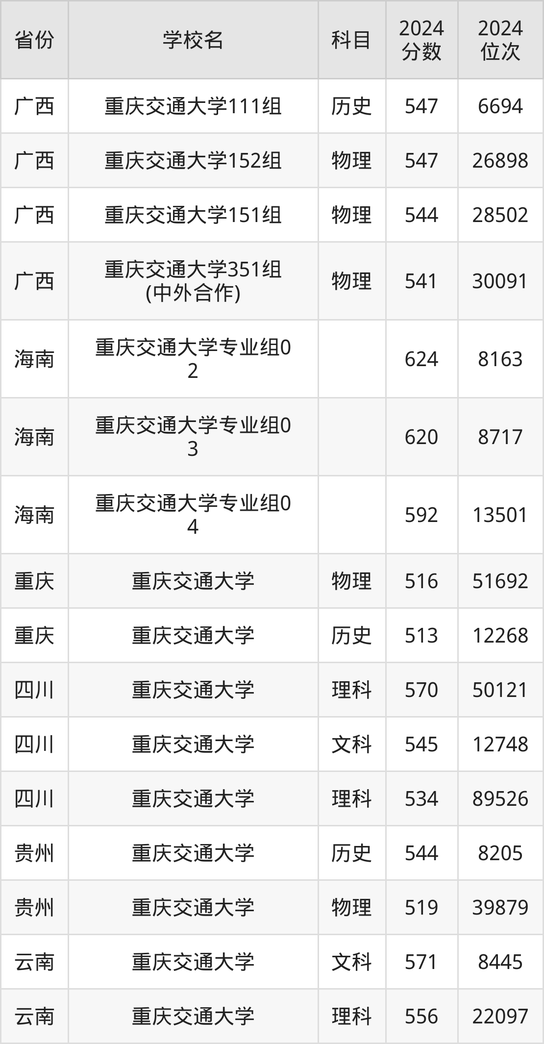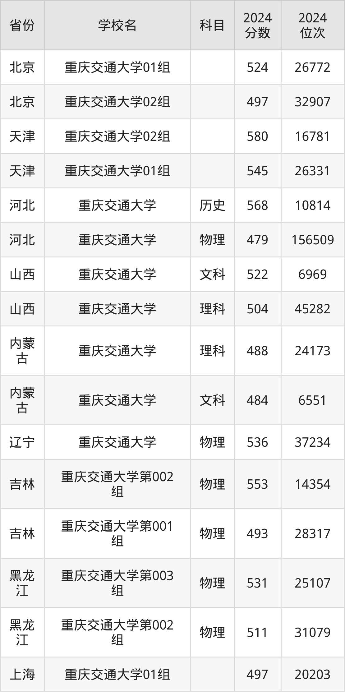 以2024年数据作为参考依据,整理重庆市内、市外考重庆交通大学要多少分。