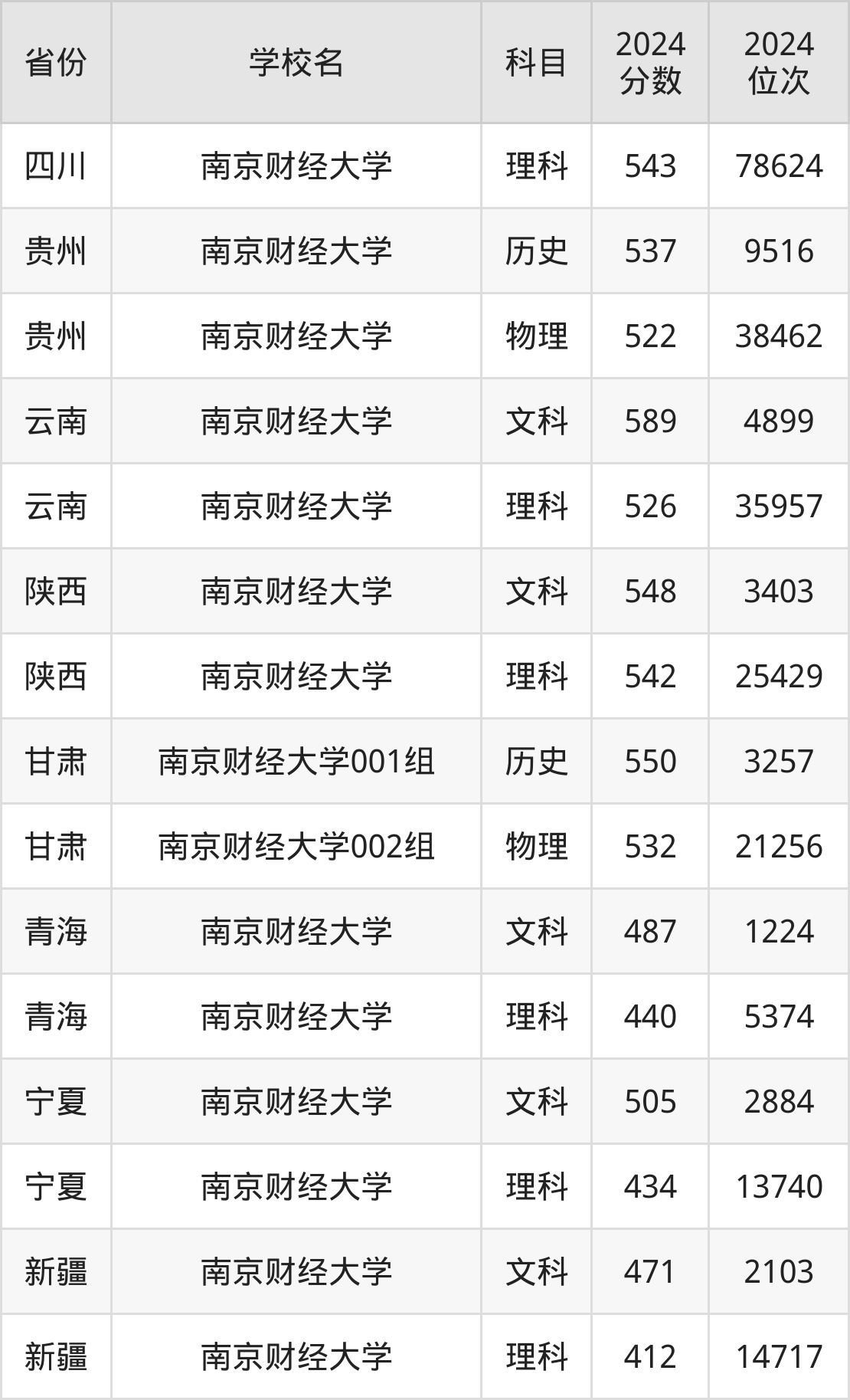 下面是南京财经大学2024年录取分数线一览表: