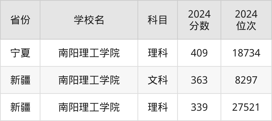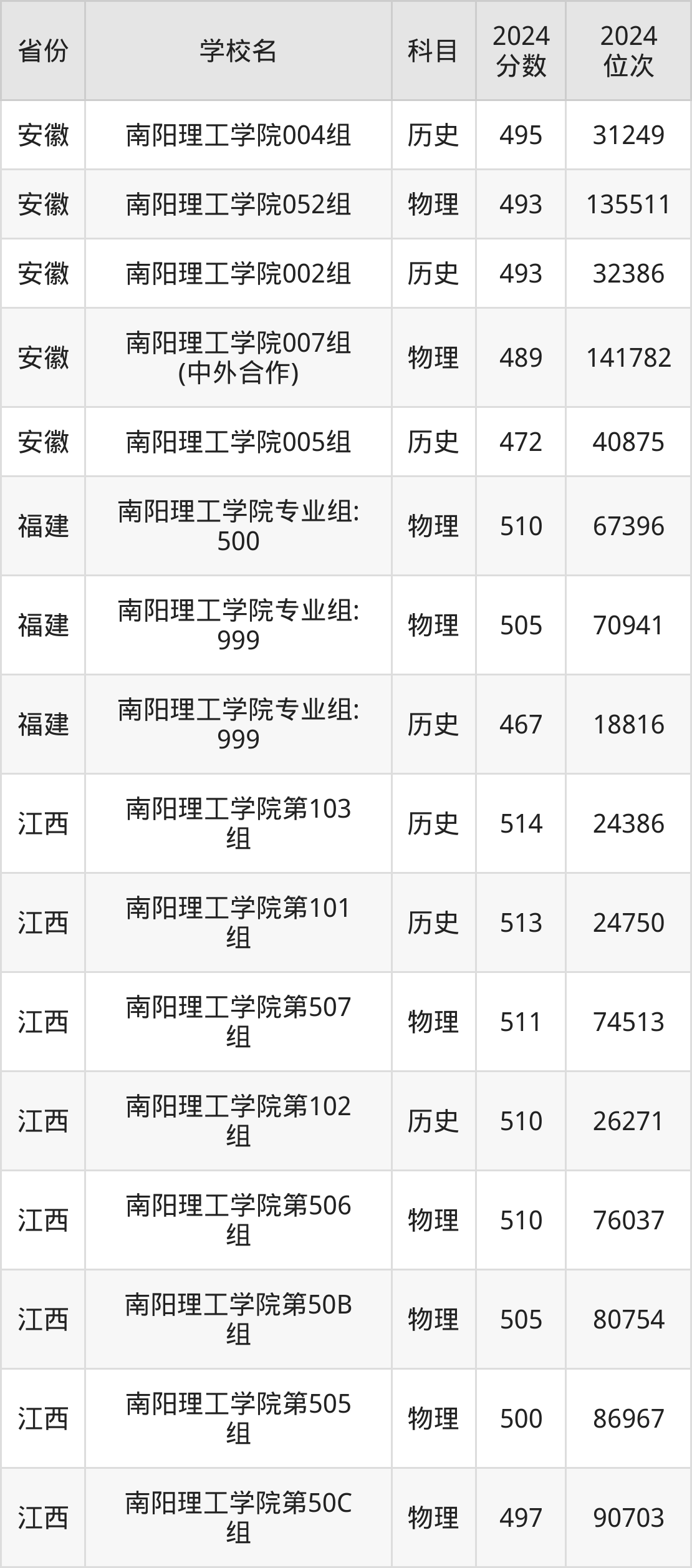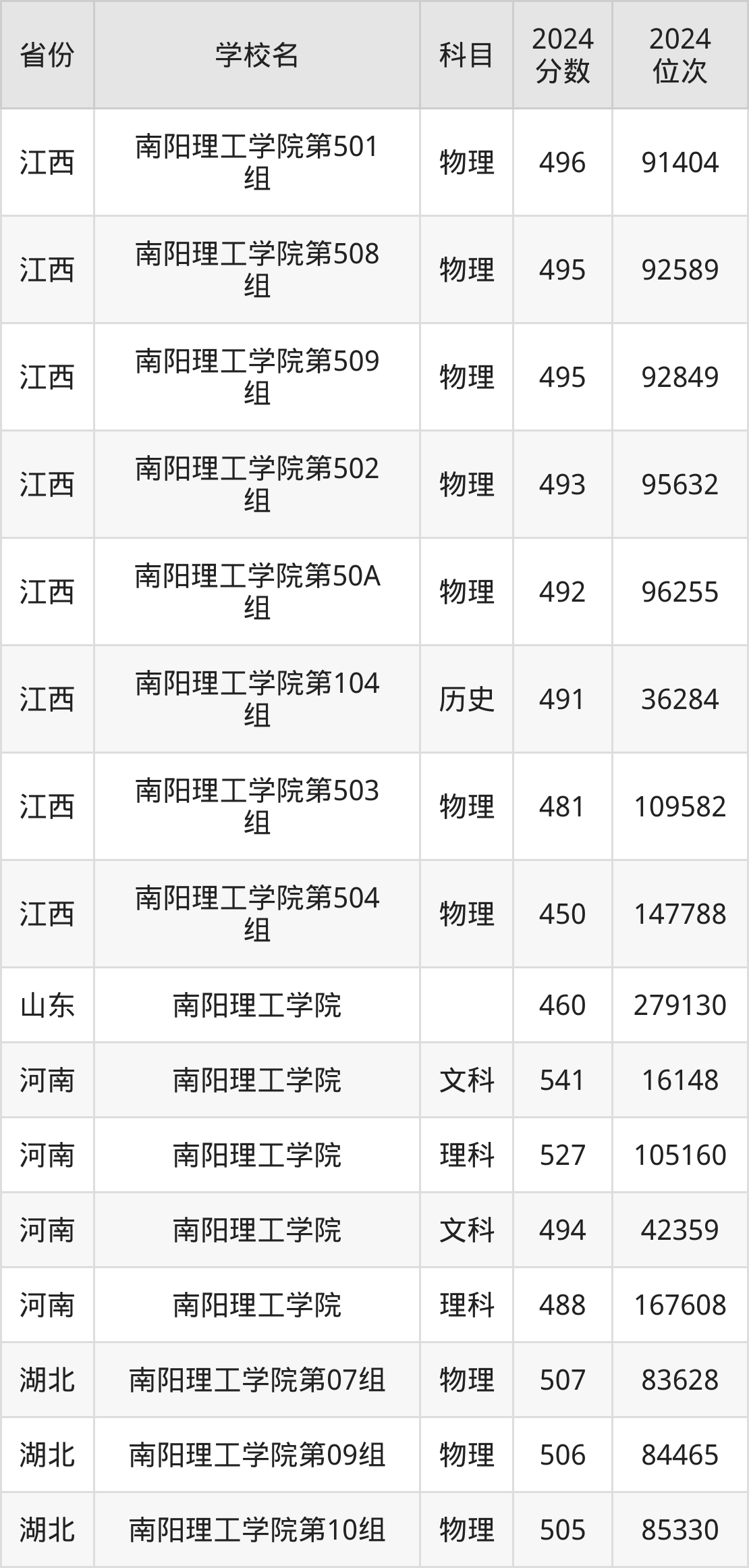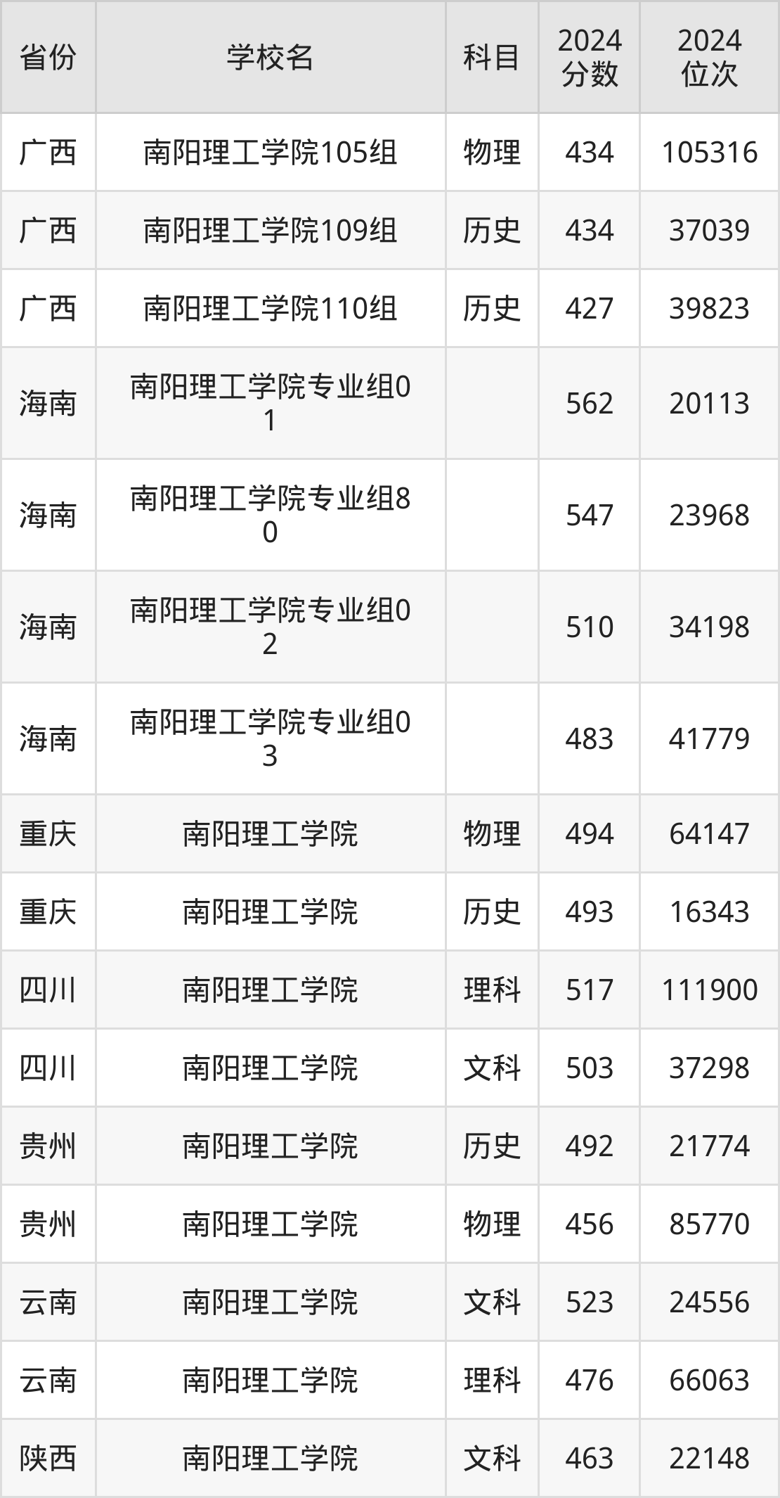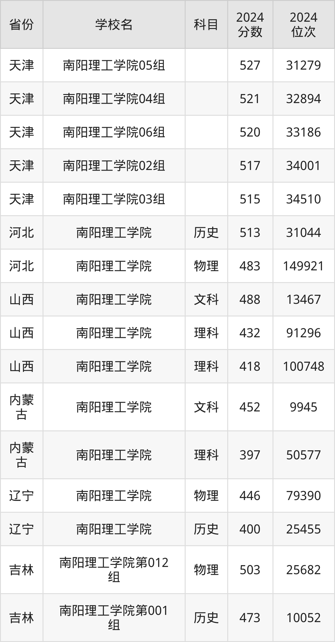由于全国数据较多,因此本文仅展示南阳理工学院省内近三年录取分数线汇总。