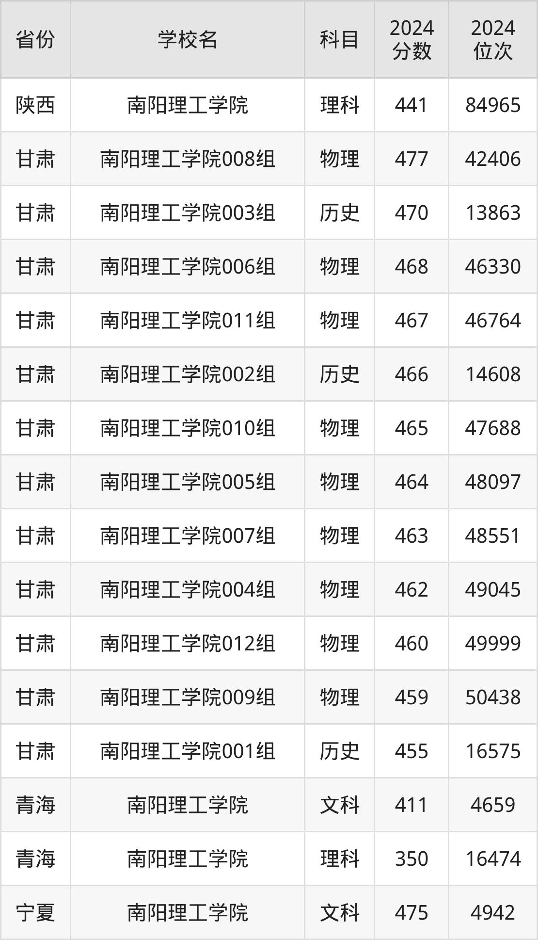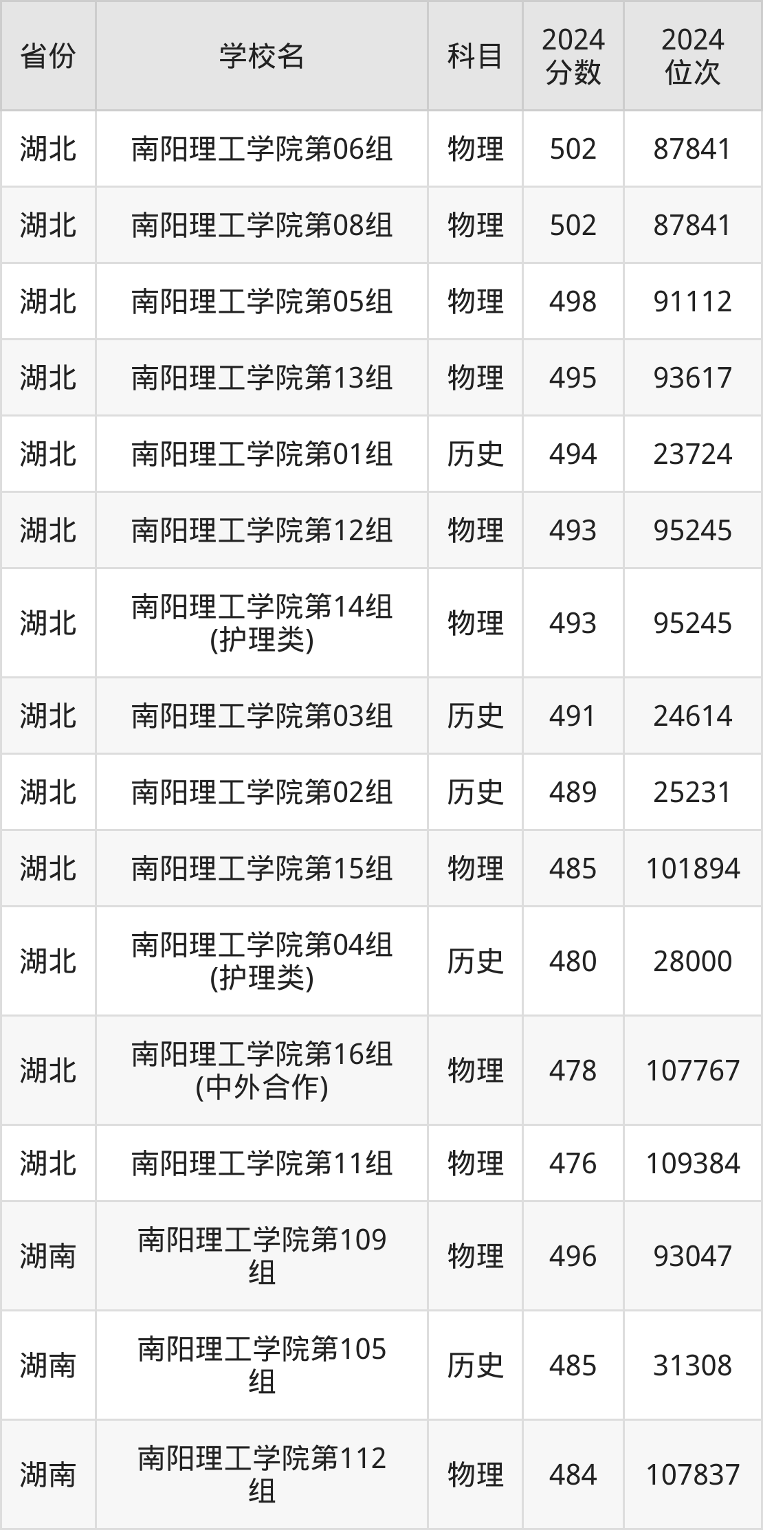 以2024年数据作为参考依据,整理河南省内、省外考南阳理工学院要多少分。