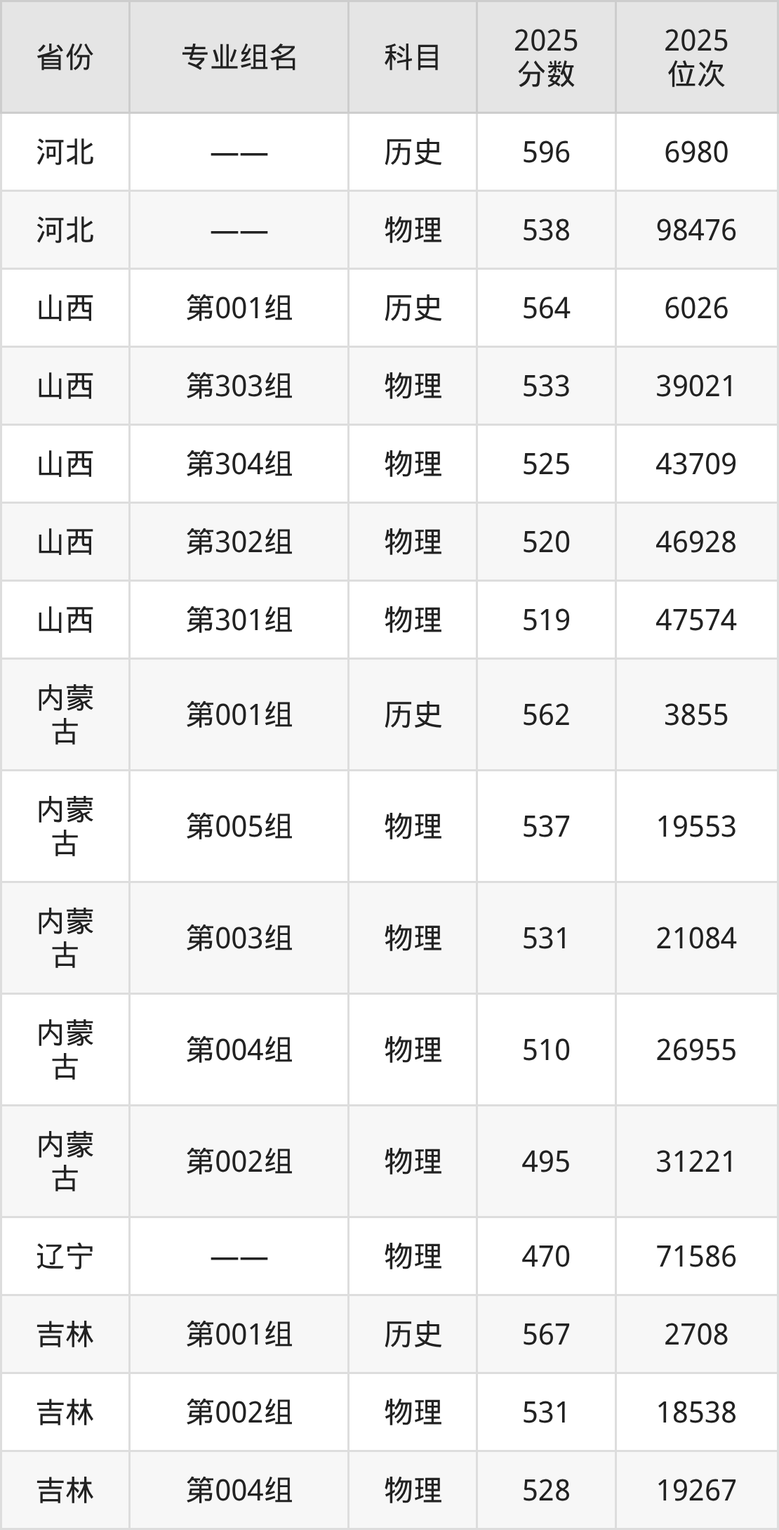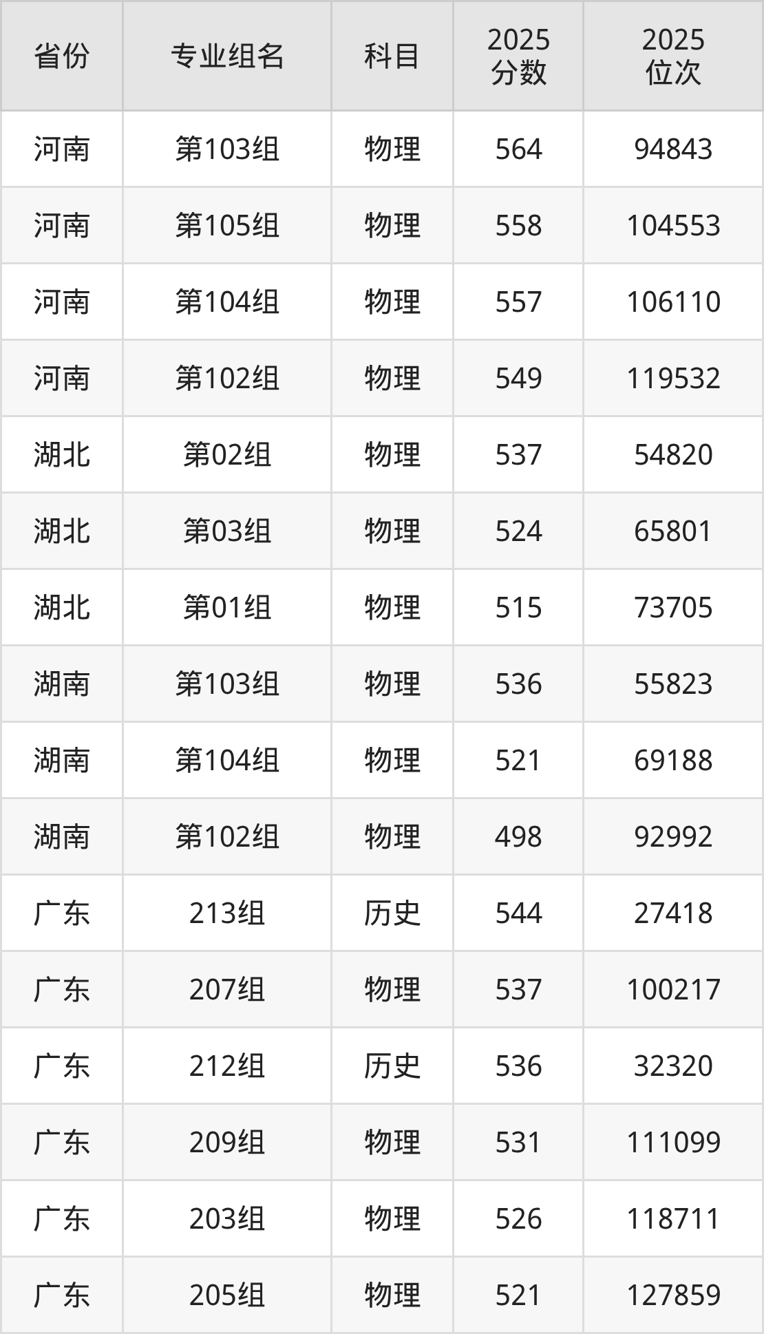 历史类:213组 544分、212组 536分、214组(联合培养) 493分。