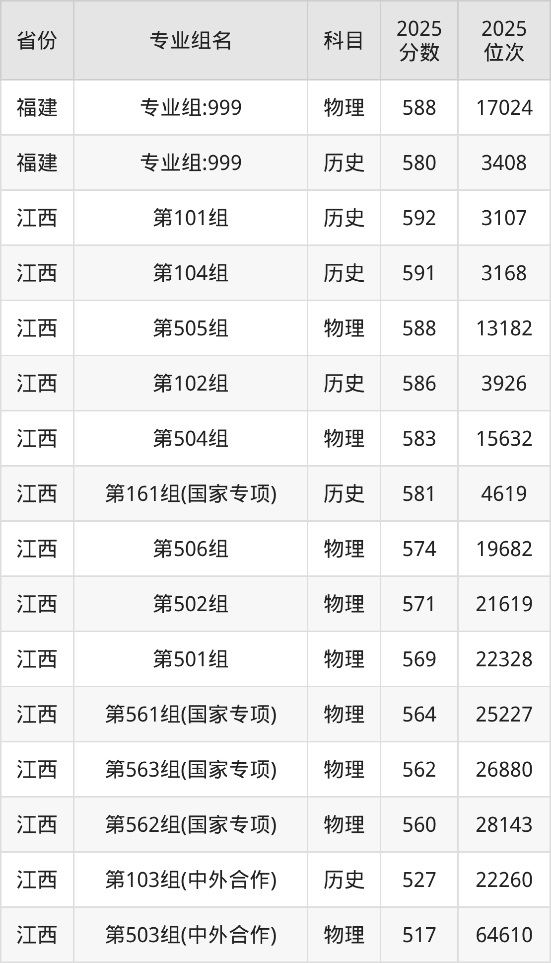 03组 591分、05组 589分、04组 587分、02组 587分、06组 586分、01组 583分、07组(中外合办) 451分。
