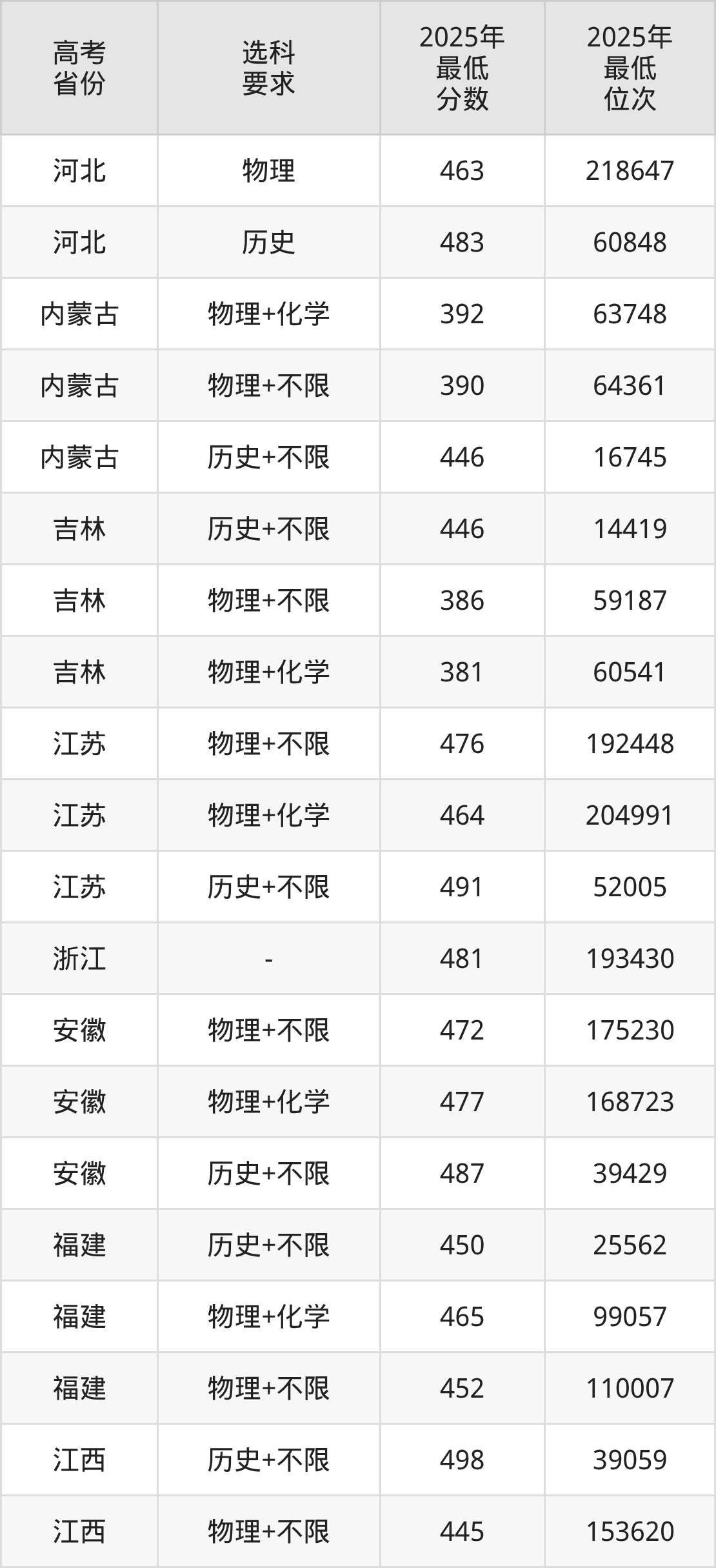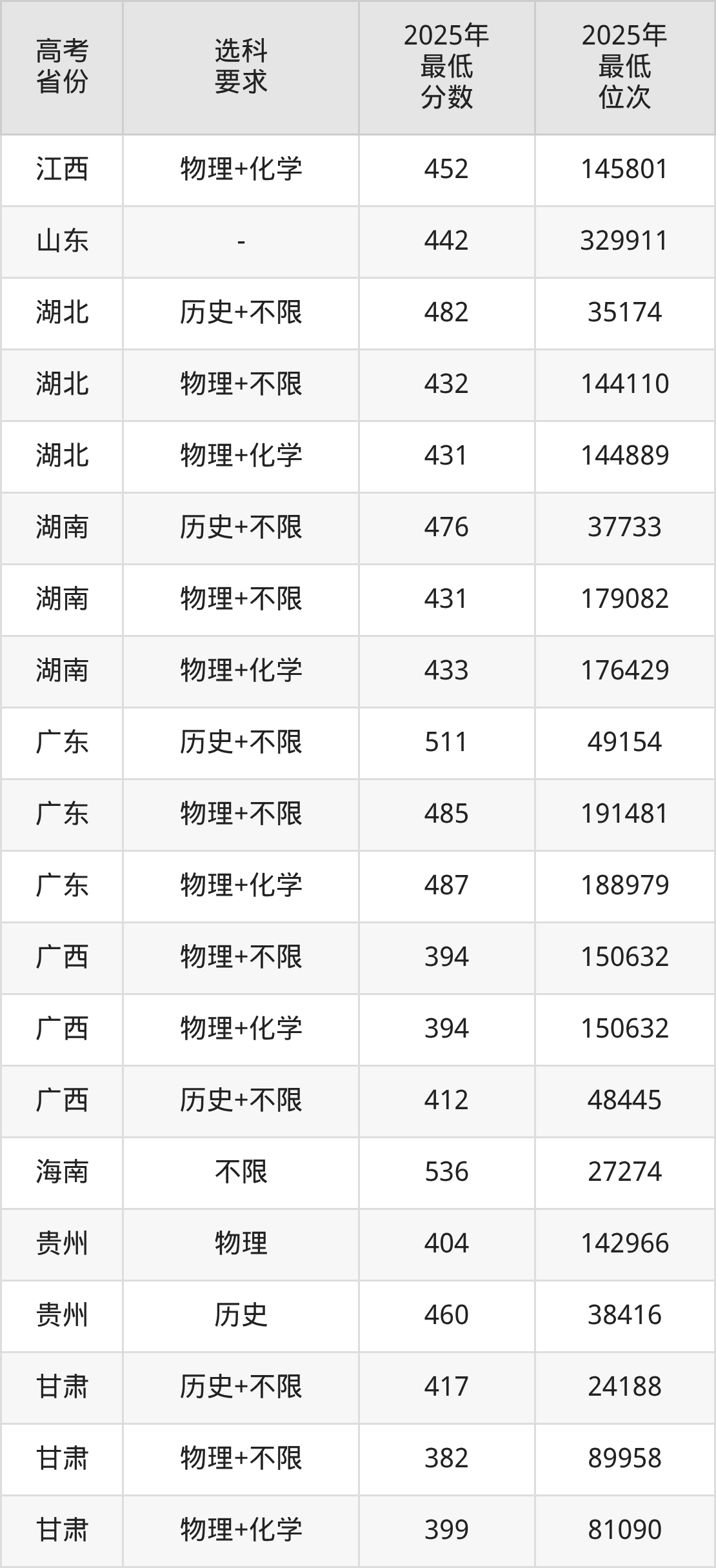 在2025年广西高考物理类招生时,公办本科收分最低的是德宏师范学院152组,最低分是249分、位次是252406位。再看桂林学院,2025年在广西物理类的最低录取分数线是394分,最低位次是150632位。