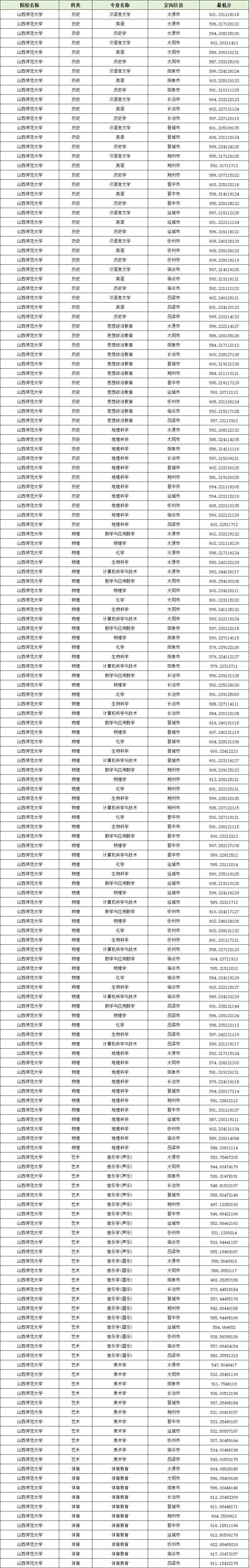 | 太原师范学院 | 历史 | 英语 | 吕梁市 | 593 |