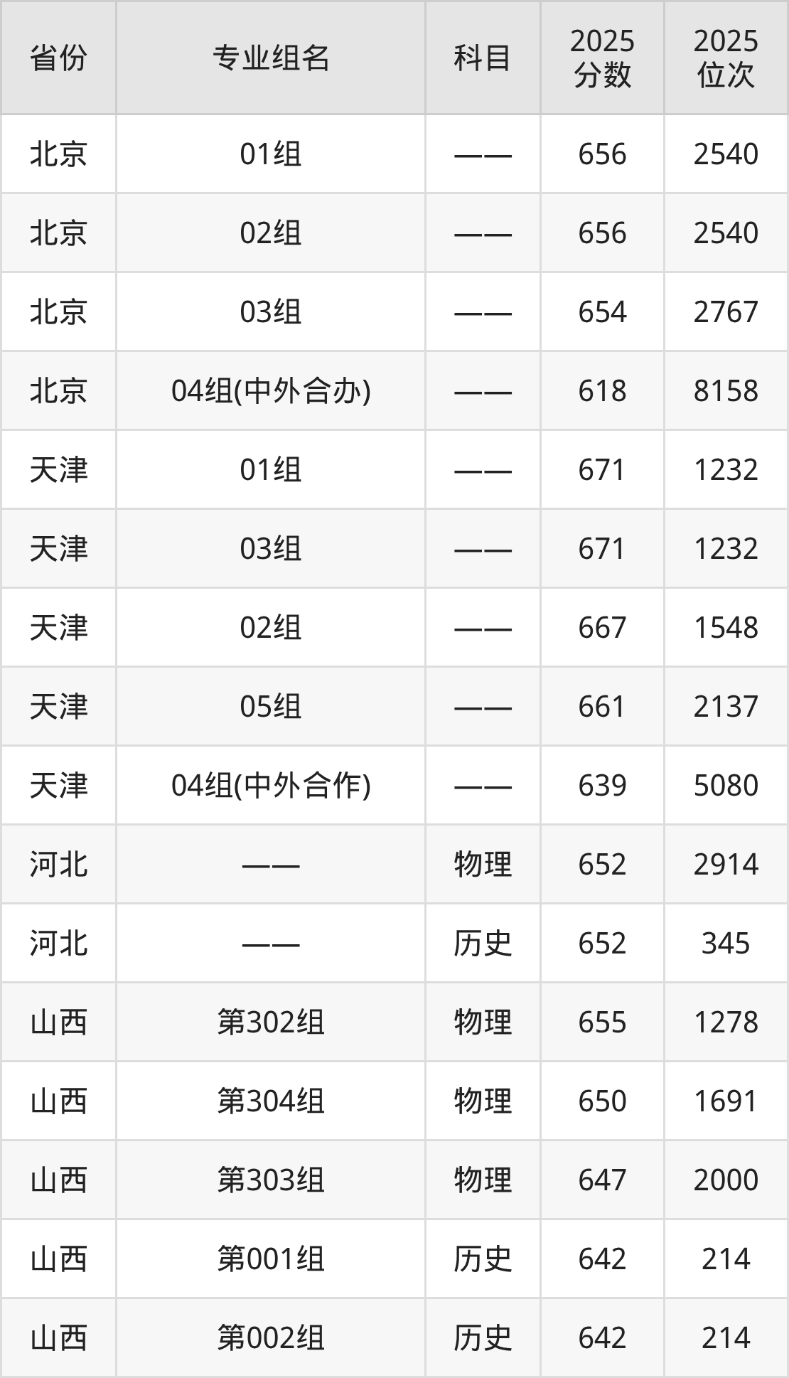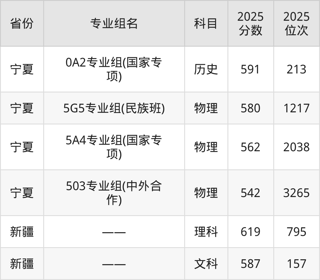 下面是武汉大学2025年录取分数线一览表: