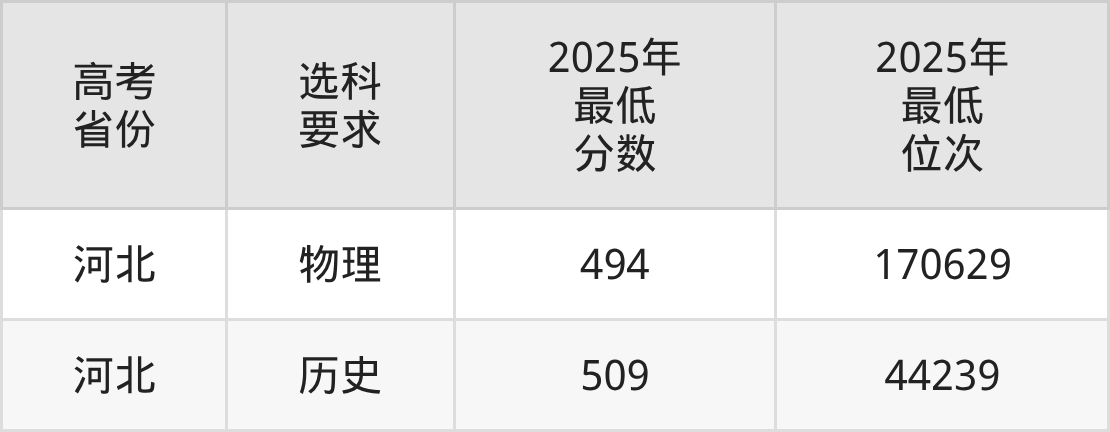 在2025年河北高考物理类招生时,公办本科收分最低的是兴安职业技术大学,最低分是286分、位次是349891位。再看河北农业大学现代科技学院,2025年在河北物理类的最低录取分数线是494分,最低位次是170629位。