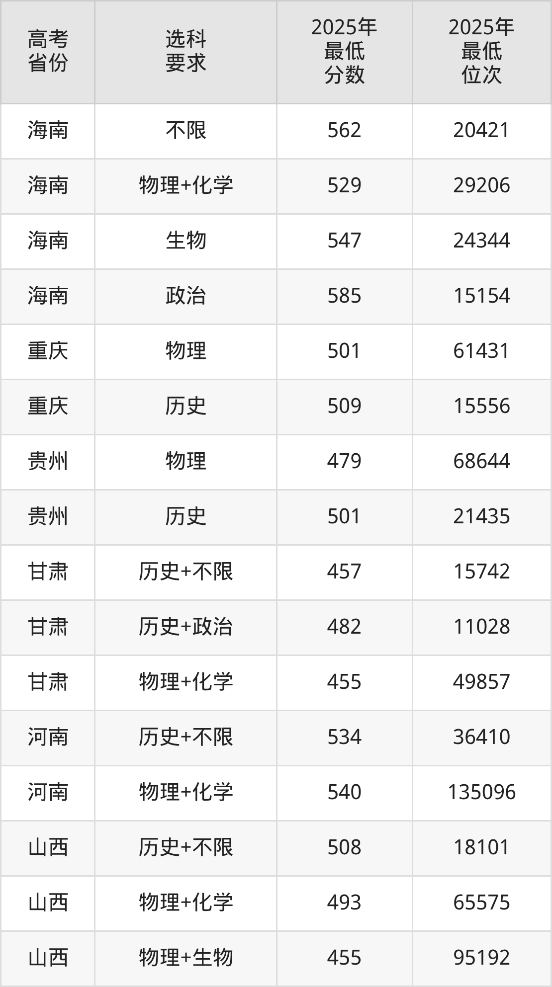 在2025年湖南高考物理类招生时,211收分最低的是海南大学第218组(中外合作办学或国际项目),最低分是462分、位次是137709位。再看怀化学院,2025年在湖南物理类的最低录取分数线是407分,最低位次是209093位。