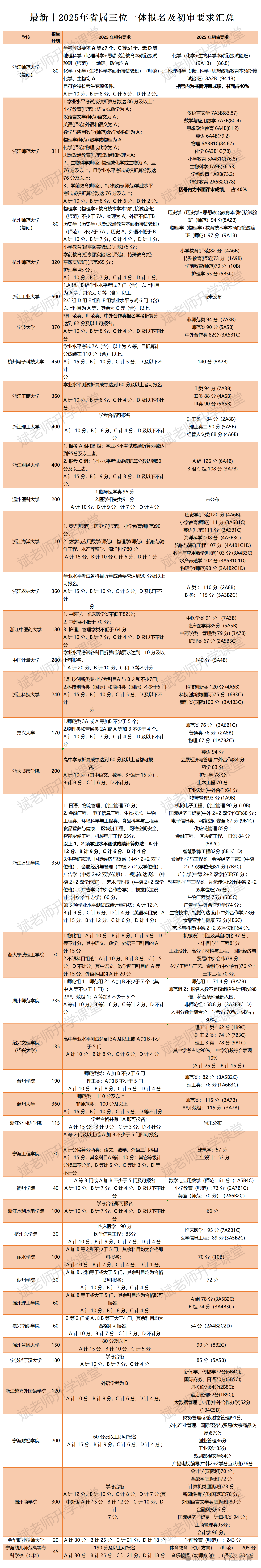 以下展示2025年浙江省属院校三位一体初审最低要求及相关信息,2026届考生可以参考: