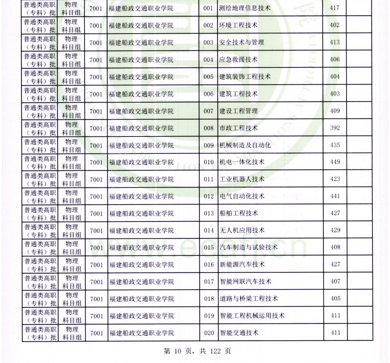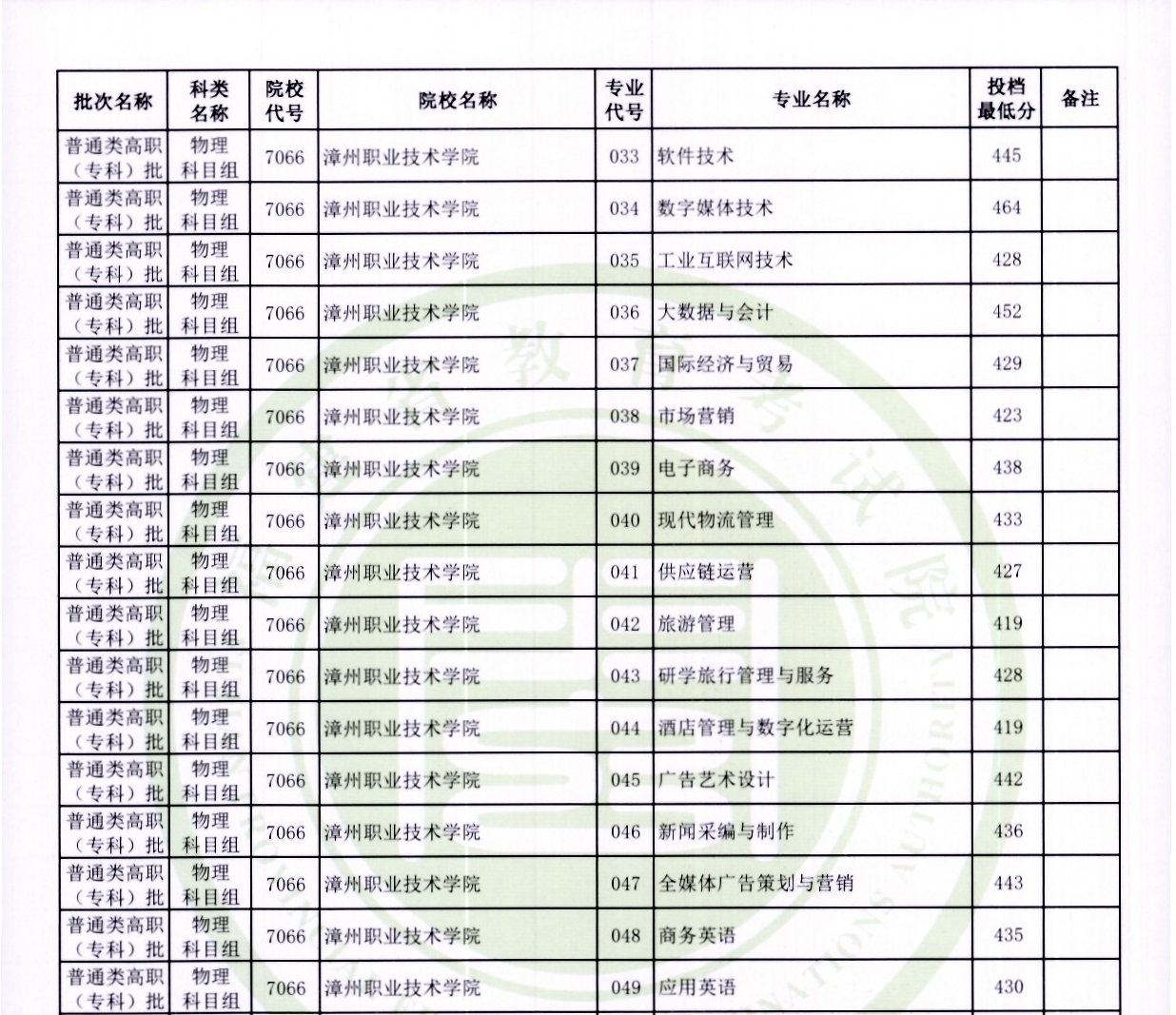 (3)漳州职业技术学院:智能制造类430分+,传统专业(如市政工程)412分