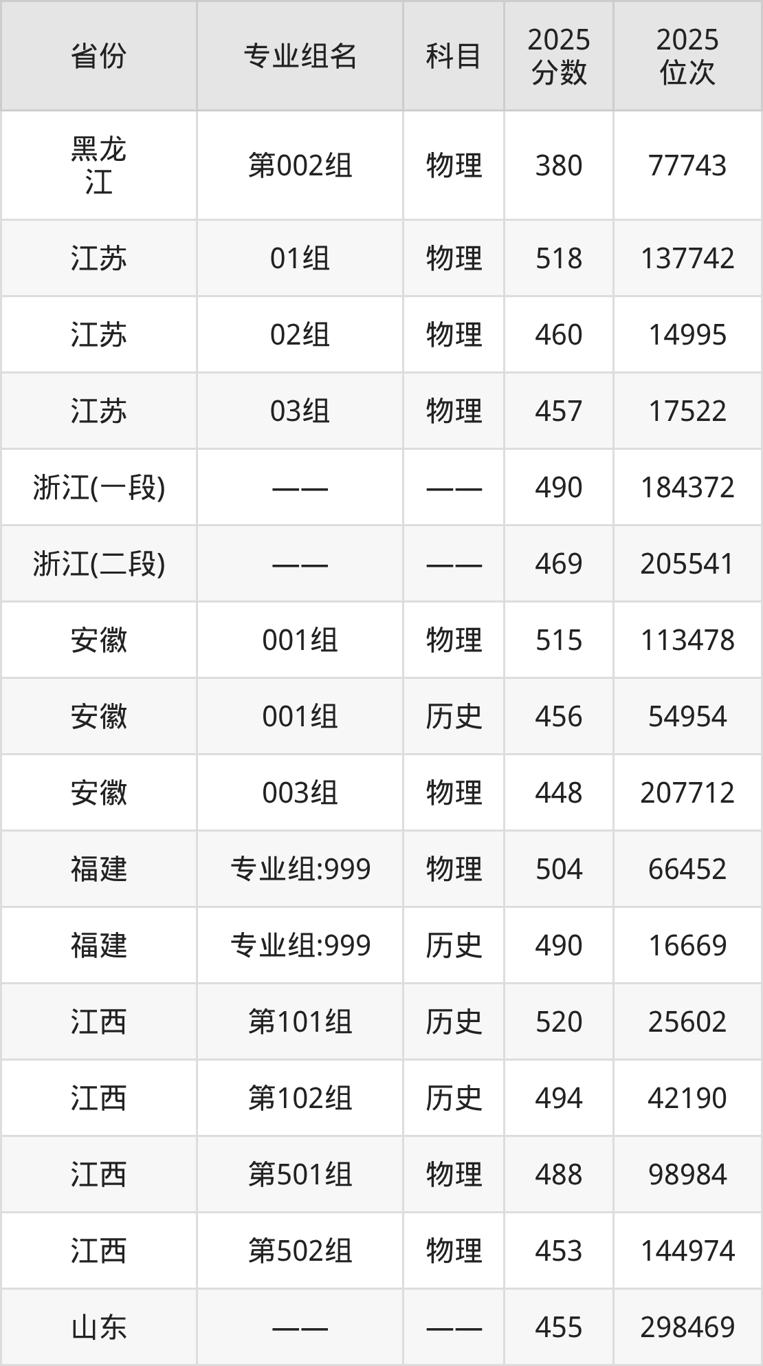 物理类:第02组 494分、第12组(专本联合培养) 472分、第13组(专本联合培养) 467分、第07组 461分、第08组 448分、第09组 410分、第11组(乡村振兴) 400分、第10组(中外合作) 360分。
