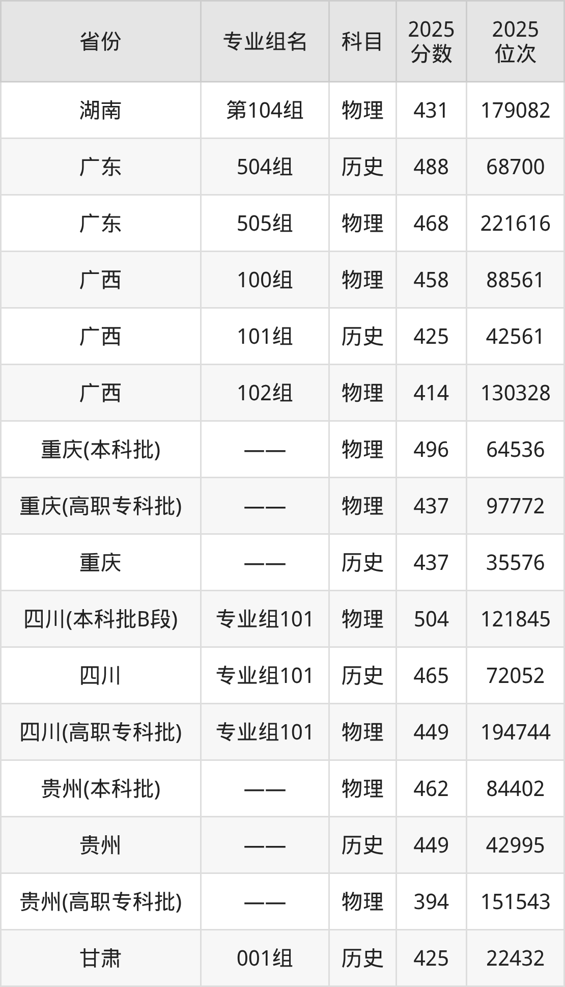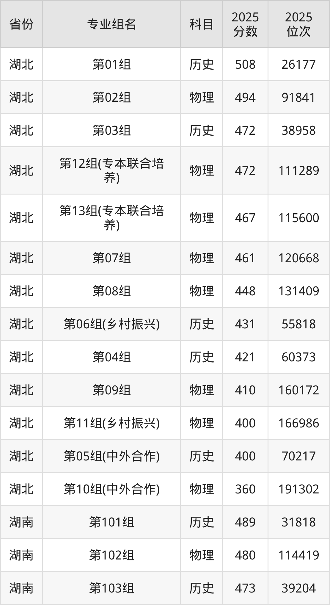 2025年武汉职业技术大学在湖北省内录取最低分数线是360分,录取最低的是物理类第10组(中外合作);录取分数线最高是508分,对应的是历史类第01组。
