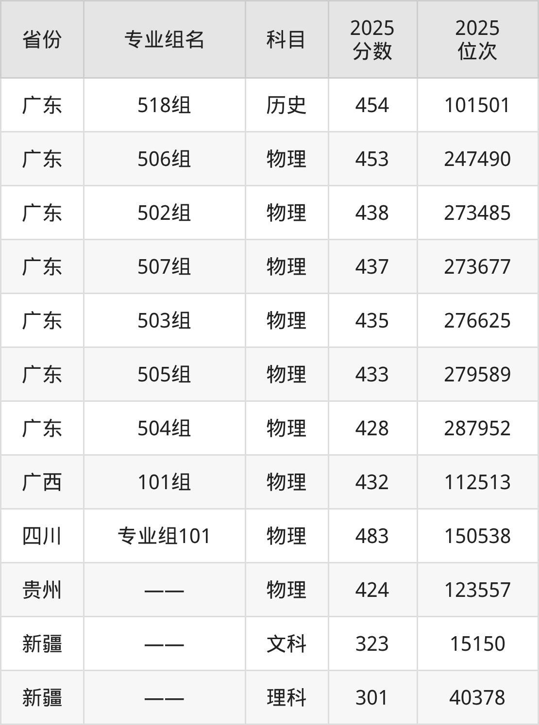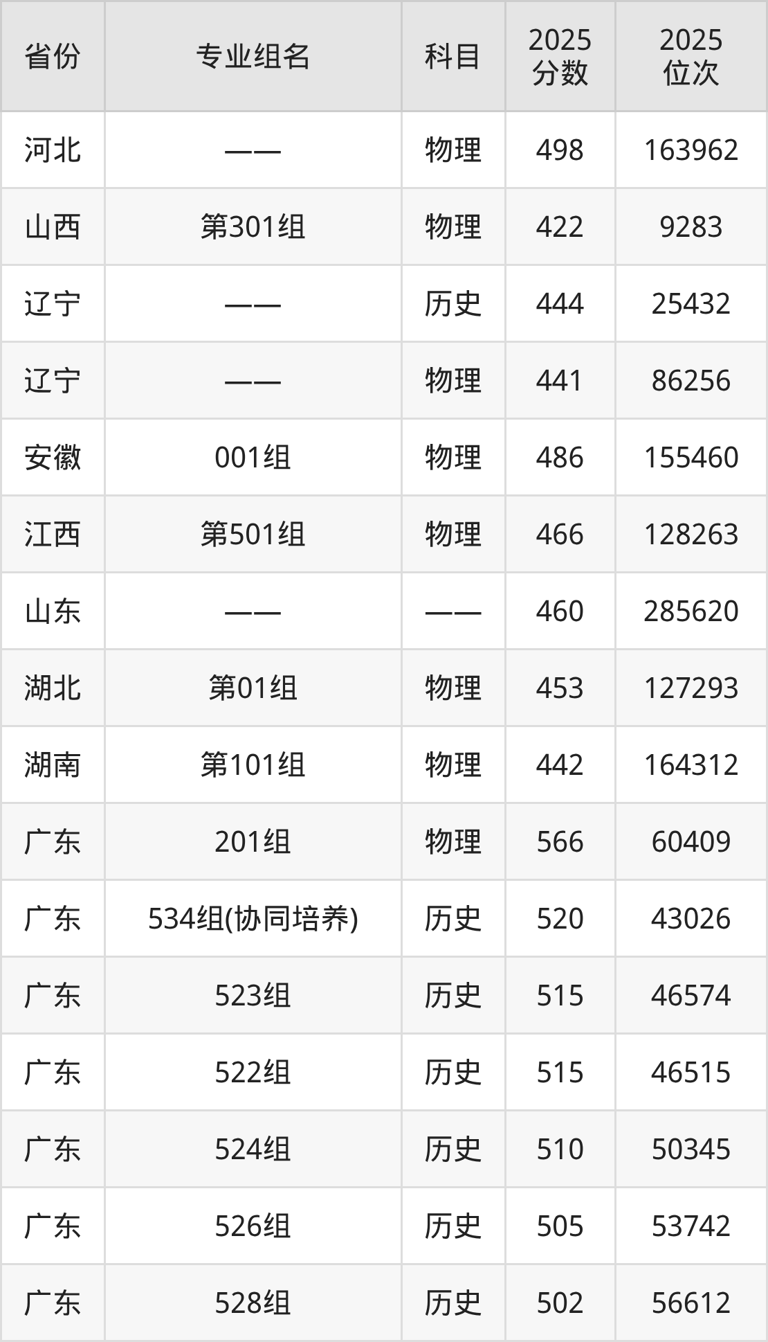 物理类:201组 566分、533组(协同培养) 501分、508组 491分、514组 490分、509组 487分、510组 486分、512组 483分、513组 483分、511组 481分、501组 458分(篇幅有限,仅展示10条数据)。