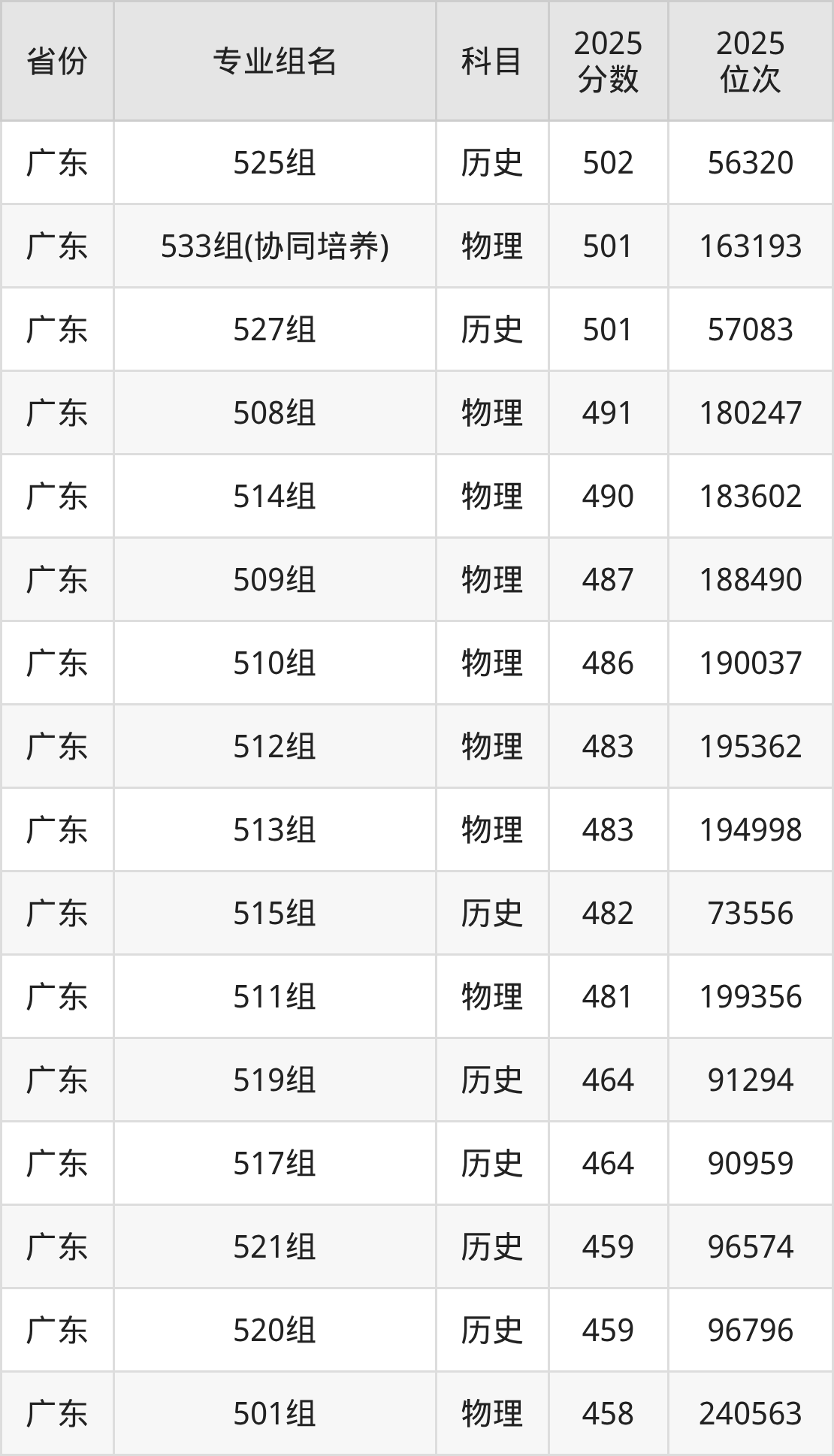 历史类:535组 489分、502组 487分、508组 481分、504组 477分、514组 476分、506组 472分、510组 466分、512组(联合培养) 459分、501组 424分、503组 423分(篇幅有限,仅展示10条数据)。