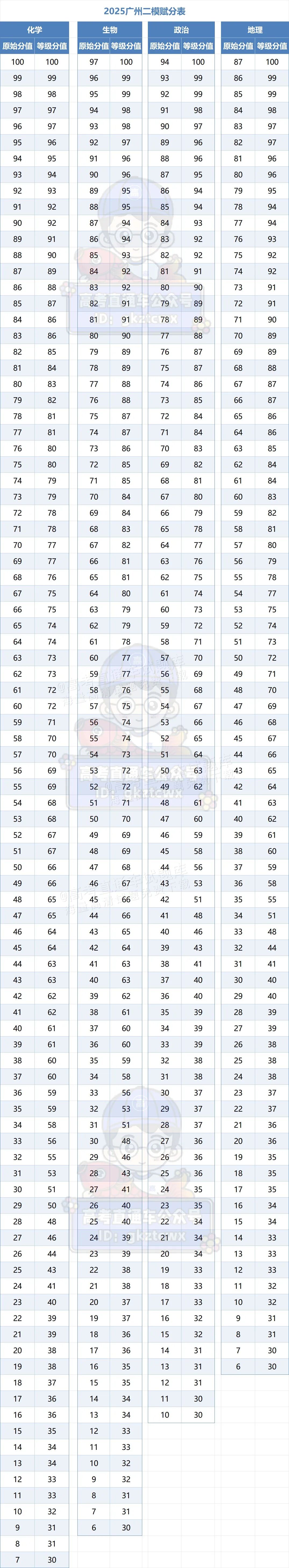2026年广州二模再选科目(化学、生物、政治、地理)的赋分对照表同样暂未公布。待官方发布后,本文会同步更新最新原始分与等级分换算数据。目前,考生可先参考2025年广州二模的赋分规则和等级区间,提前了解赋分逻辑。