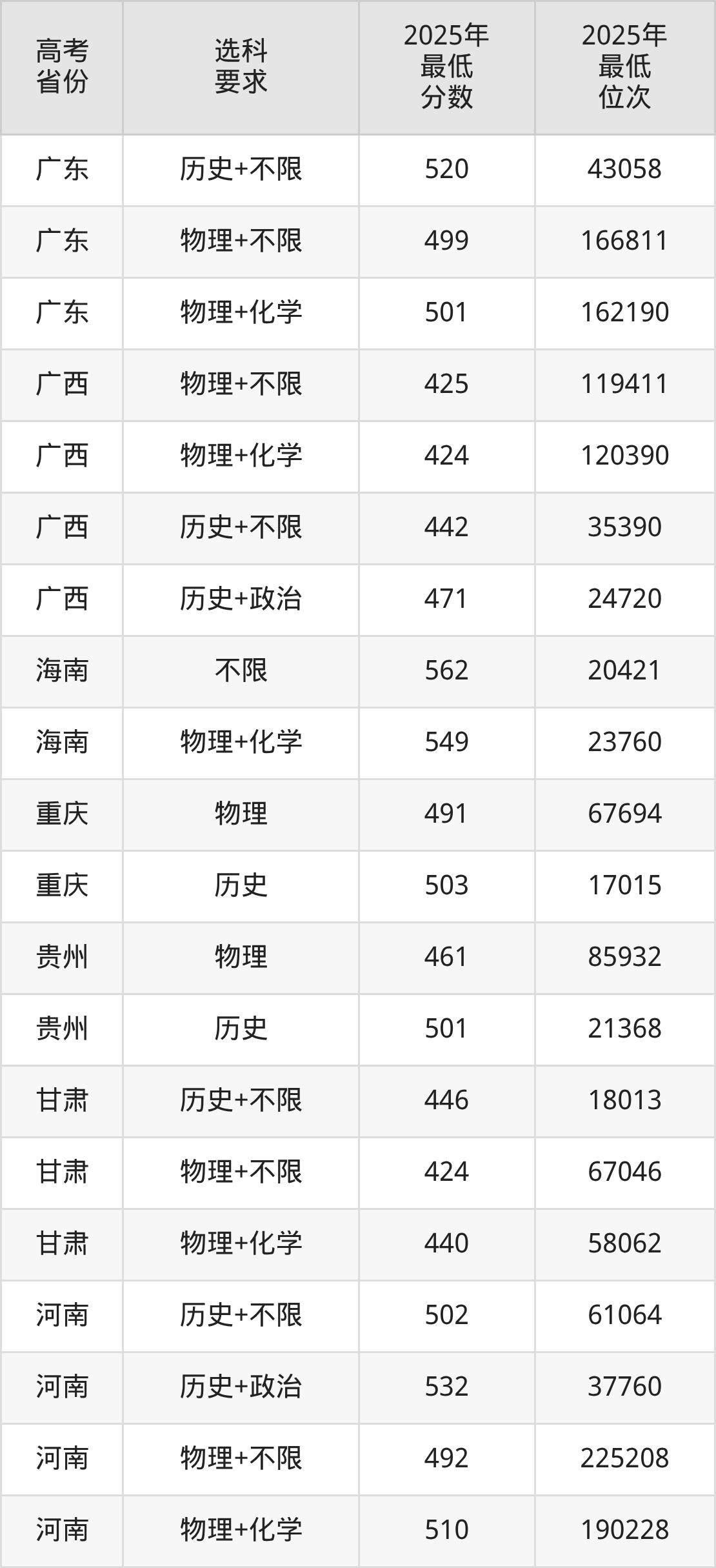 在2025年广西高考物理类招生时,211收分最低的是东北农业大学104组,最低分是381分、位次是163558位。再看贺州学院,2025年在广西物理类的最低录取分数线是424分,最低位次是120390位。