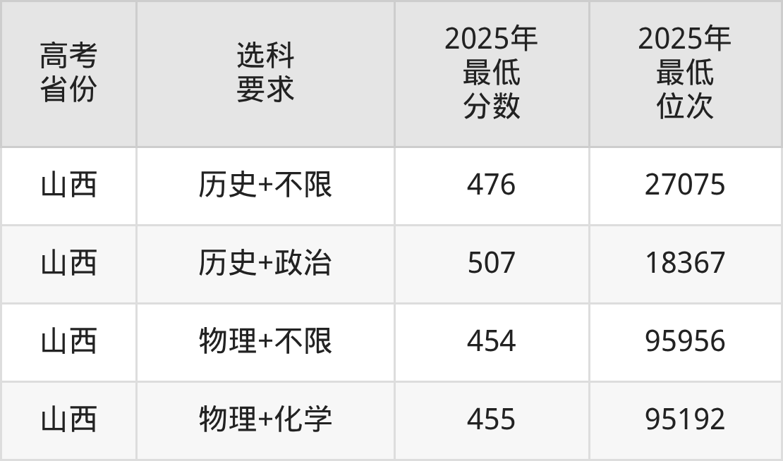 (3)历史学,最低分是484,录取位次是20564,学费是4200元一年。