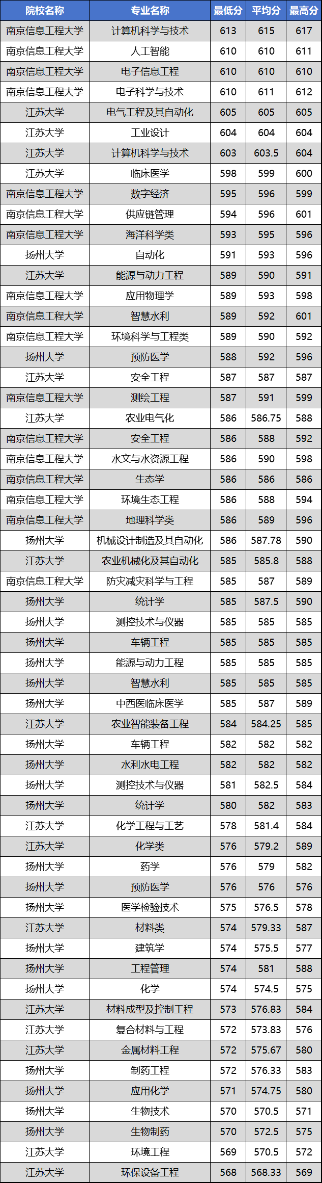 | 扬州大学 | 工商管理 | 576 | 576.5 | 577 |