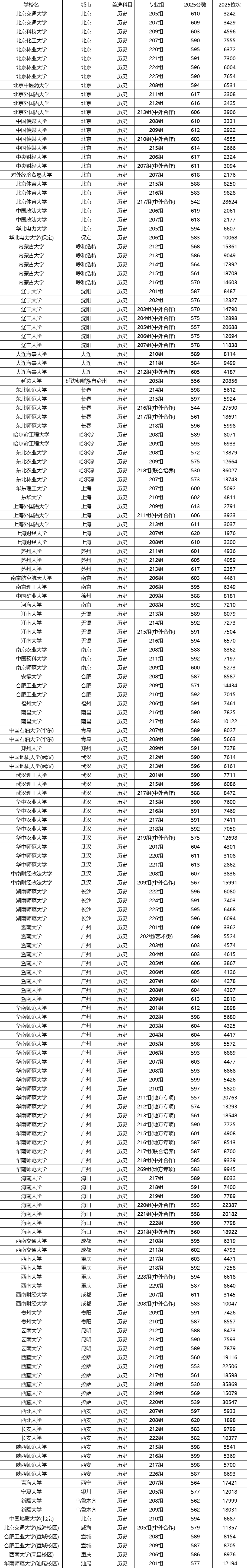 历史类考生上211高校的最低分为530分,出自西藏大学“218组”。常规专业门槛在540分以上,例如东北农业大学“218组(联合培养)”530分为特殊案例。211高校在历史类的分数范围为530—620分,主流区间集中在570—610分,语言、财经、政法类院校分数偏高。