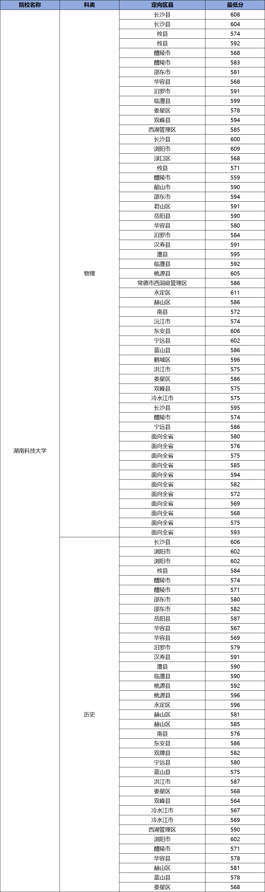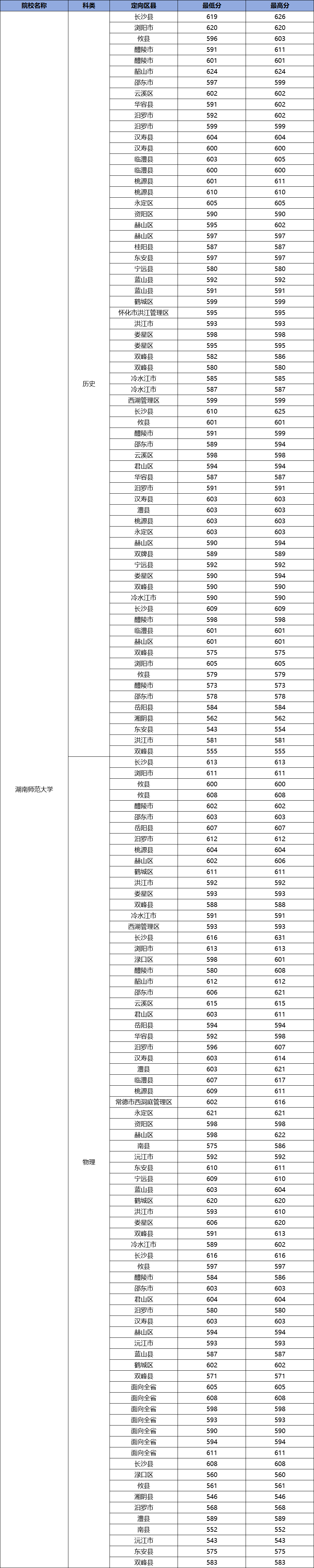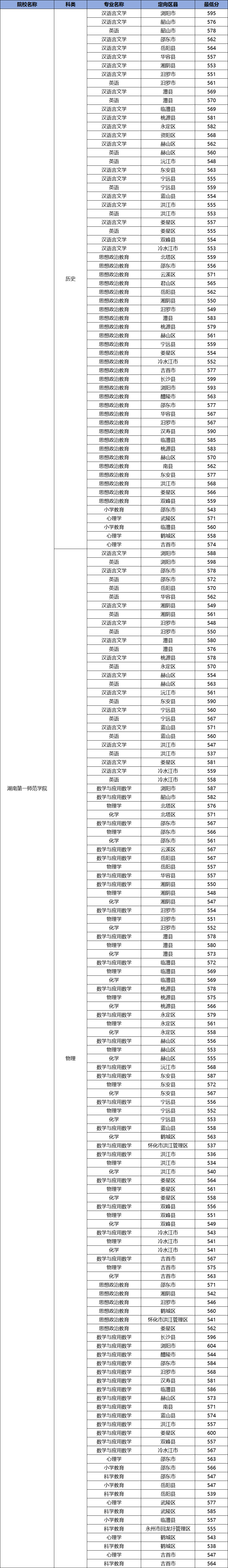 湖南师范大学,本科提前批,省属公费师范生面向汉寿县就业,最高分614分,最低分600分