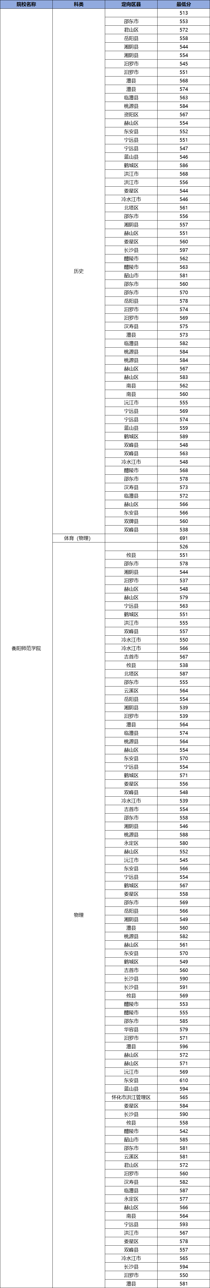 湖南师范大学,本科提前批,省属公费师范生面向东安县就业,最高分611分,最低分543分