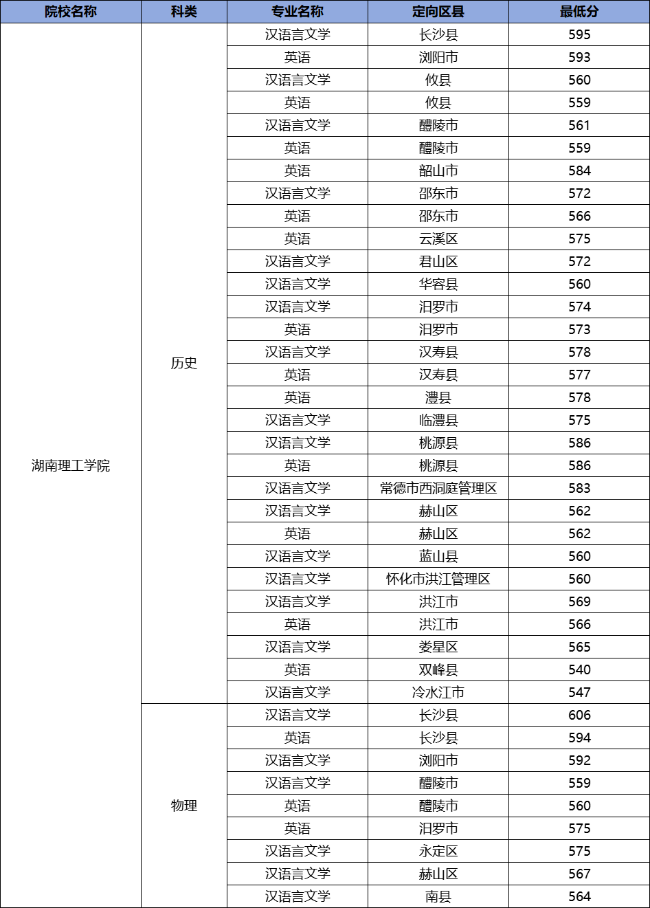 湖南理工学院公费师范生面向赫山区,汉语言文学最低分562分、英语最低分562分。