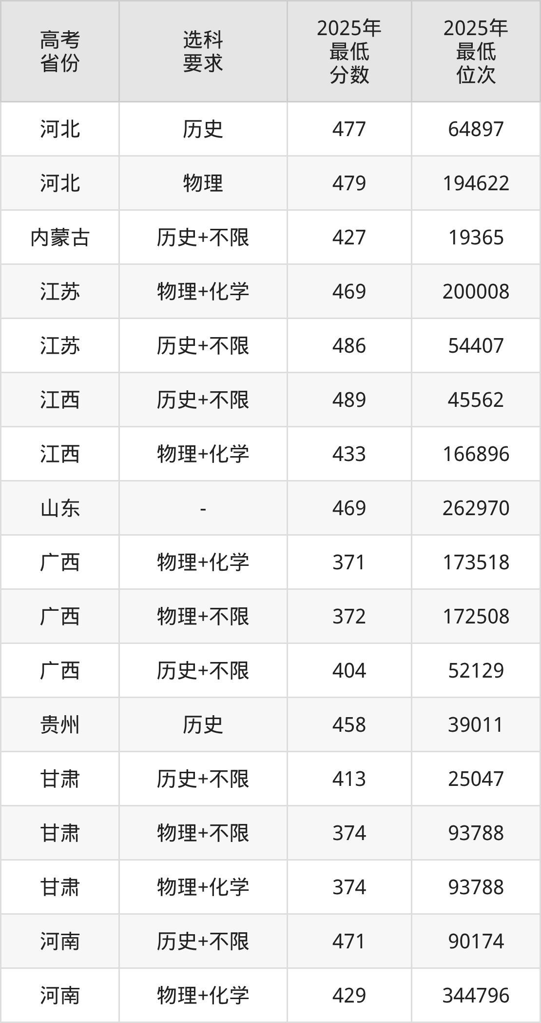 在2025年天津高考招生时,公办本科收分最低的是新疆医科大学01组,最低分是477分、位次是46890位。再看天津传媒学院,2025年在天津的最低录取分数线是476分,最低位次是47173位。