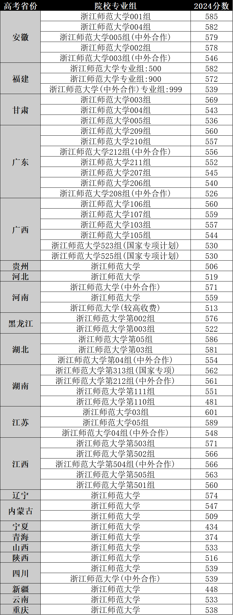 除了浙江省内,浙江师范大学在全国各地的录取分数线也存在显著差异。根据官方数据,2024年浙江师范大学在全国各省的录取分数线最低为374分,最高为628分。这一数据反映了不同地区之间的教育水平和考生竞争程度的差异。