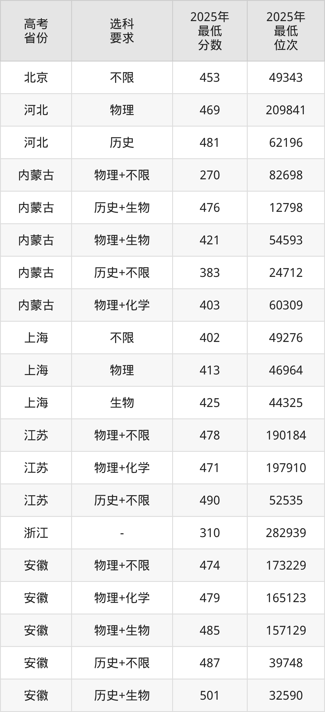 在2025年新疆高考理科招生时,公办本科收分最低的是兴安职业技术大学,最低分是148分、位次是52507位。再看西安培华学院,2025年在新疆理科的最低录取分数线是309分,最低位次是38909位。
