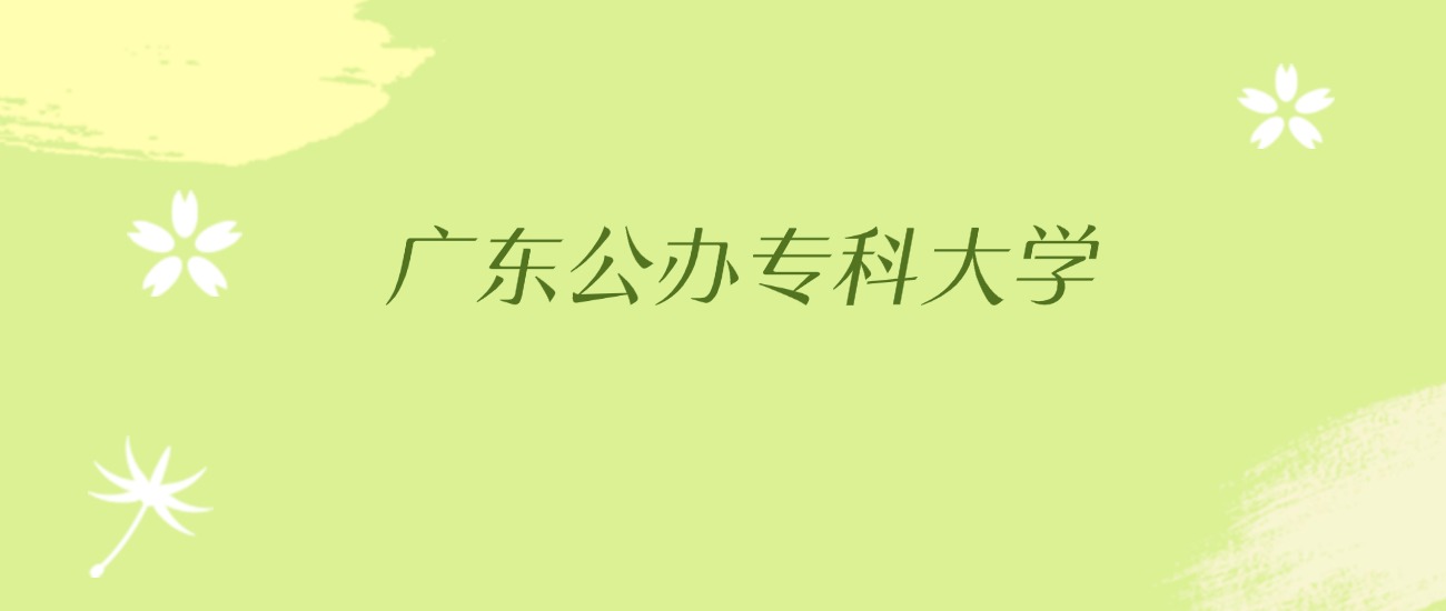 除了以上5所大学外,广东的公办专科大学还有广东行政职业学院、广东南华工商职业学院、东莞职业技术学院、广东松山职业技术学院、广东青年职业学院、汕头职业技术学院、广东食品药品职业学院、广州科技贸易职业学院、湛江幼儿师范专科学校、公安边防部队高等专科学校、惠州城市职业学院、河源职业技术学院、广东环境保护工程职业学院、广东艺术职业学院、罗定职业技术学院、广州城市职业学院、广东农工商职业技术学院、广东体育职业技术学院、广东职业技术学院、阳江职业技术学院、广东茂名幼儿师范专科学校、广东茂名健康职业学院、茂名职业技术学院、广州民航职业技术学院、广州铁路职业技术学院、广东女子职业技术学院、广东交通职业技术学院、惠州工程职业学院、广州卫生职业技术学院、广东工程职业技术学院、佛山职业技术学院、中山职业技术学院、广东科学技术职业学院、广东科贸职业学院、广东理工职业学院、广东水利电力职业技术学院、清远职业技术学院、广东建设职业技术学院、广东司法警官职业学院、广州工程技术职业学院、广东省外语艺术职业学院、广东机电职业技术学院、广州体育职业技术学院、广东文艺职业学院、揭阳职业技术学院、中山火炬职业技术学院、广东工贸职业技术学院、惠州卫生职业技术学院、珠海城市职业技术学院、广东茂名农林科技职业学院、广东江门幼儿师范高等专科学校、广东财贸职业学院、广州幼儿师范高等专科学校、广东汕头幼儿师范高等专科学校、广东梅州职业技术学院、广东潮州卫生健康职业学院、广东云浮中医药职业学院、深圳城市职业学院。
