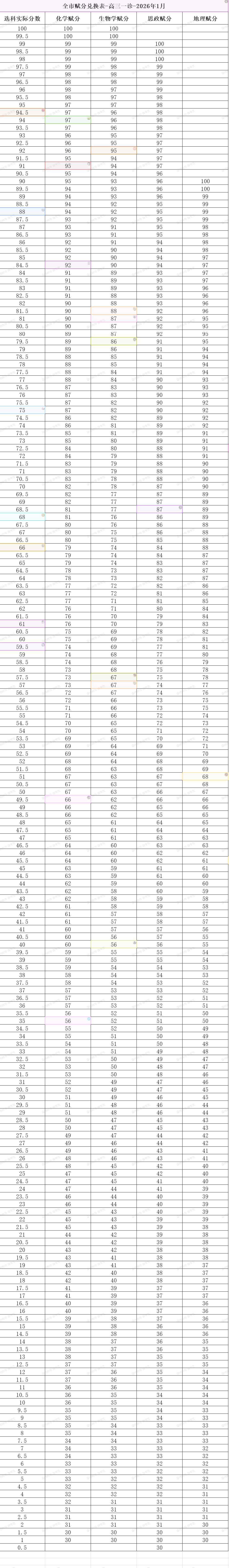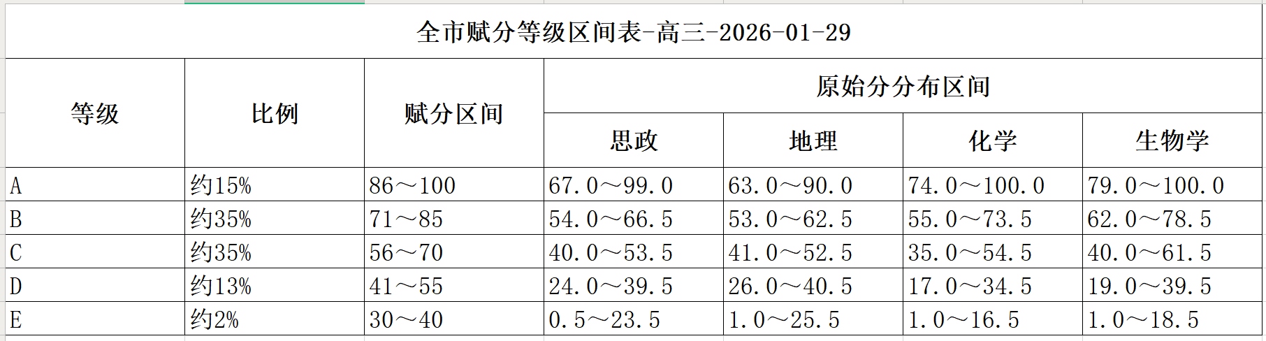 再选科目(化学、生物学、思想政治、地理)成绩并非直接使用原始分,而是根据全市考生的排名比例进行等级赋分,保证公平性。