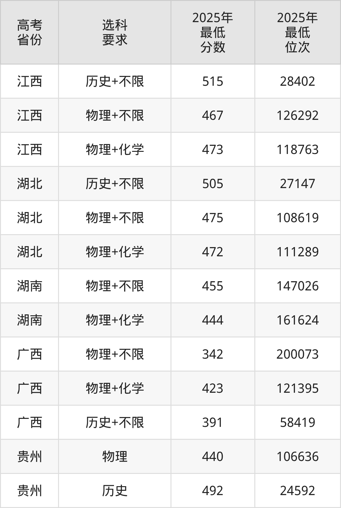 在2025年广西高考物理类招生时,211收分最低的是东北农业大学104组,最低分是381分、位次是163558位。再看广西职业师范学院,2025年在广西物理类的最低录取分数线是342分,最低位次是200073位。