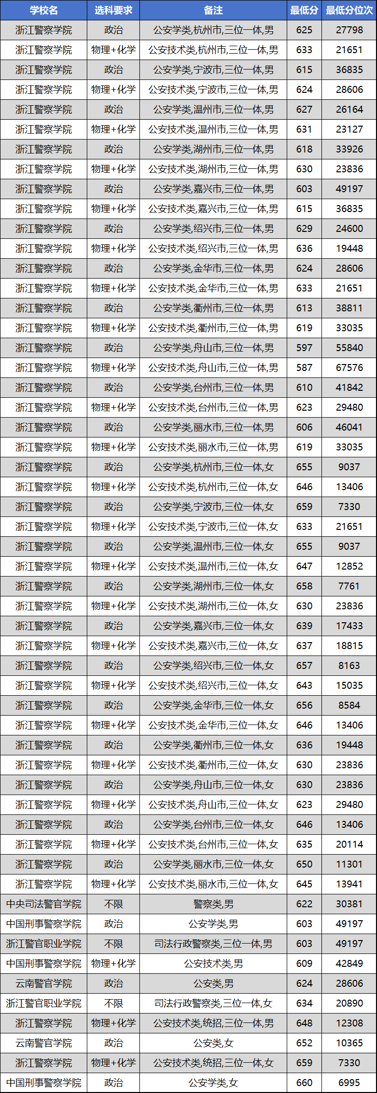 浙江警察学院录取数据最为详实,呈现明显特点:
