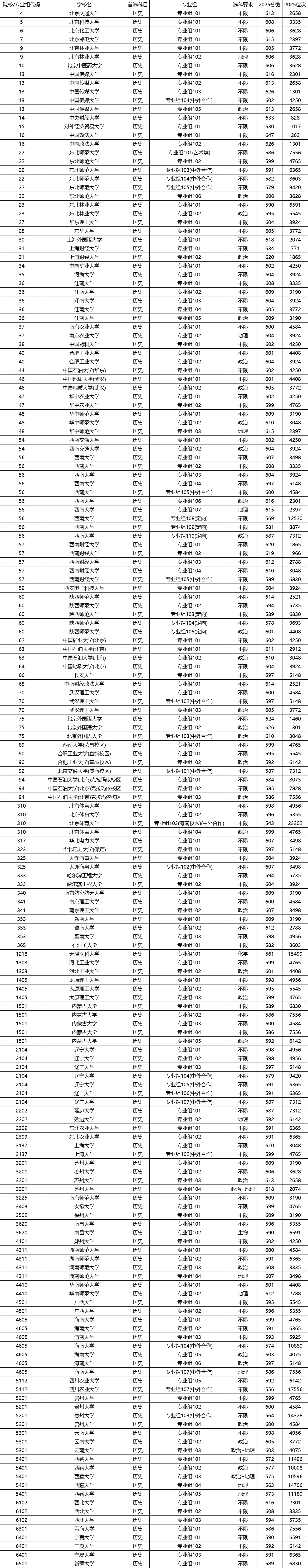 特点:涵盖全国大多数211院校的文史类专业,是历史类考生主要竞争区间,位次集中在3000-6000名