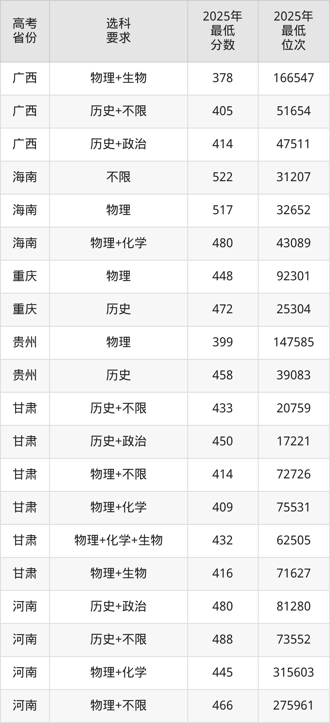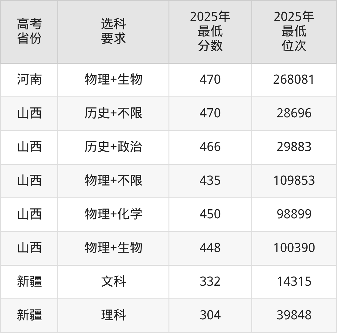 在2025年新疆高考理科招生时,公办本科收分最低的是兴安职业技术大学,最低分是148分、位次是52507位。再看西京学院,2025年在新疆理科的最低录取分数线是304分,最低位次是39848位。