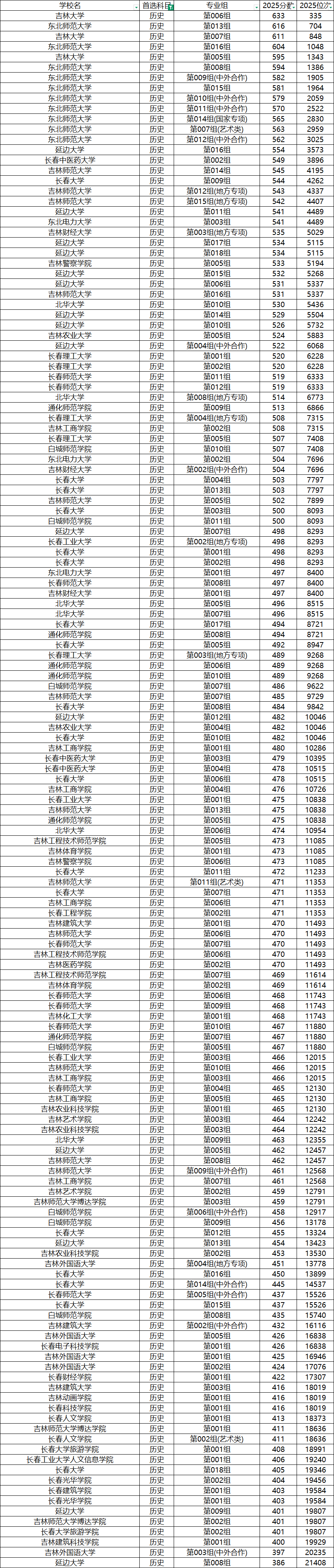 二、2025年全国本科院校在吉林历史类录取分数线