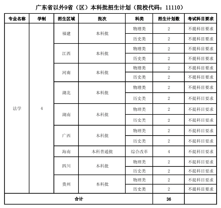 普通本科批专业:约200人,包括法学、行政管理等专业,面向广东招生