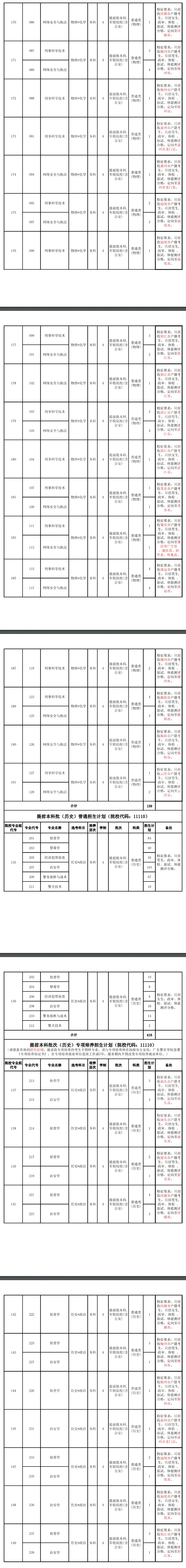 特别说明:专项培养计划面向特定地市户籍考生招生,被录取考生须与地市公安局、学院签署专项培养协议书,毕业后定向到签约地市公安机关就业,服务期不少于7年。