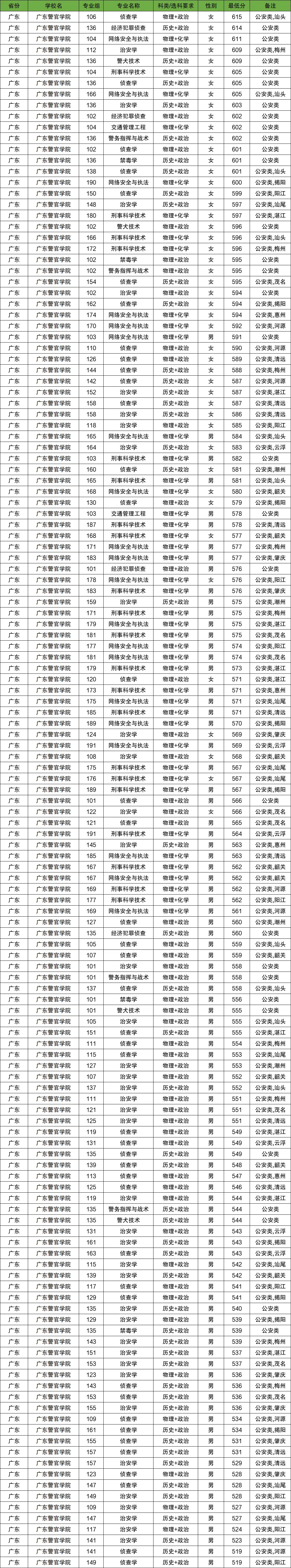 男生(历史+政治类/公安学类):2025年最低分在546分至575分之间,不同定向区域差异较大。预计2026年男生历史类录取线在545分至580分之间,热门地市(如汕头、梅州)分数较高,云浮、揭阳等地相对较低。