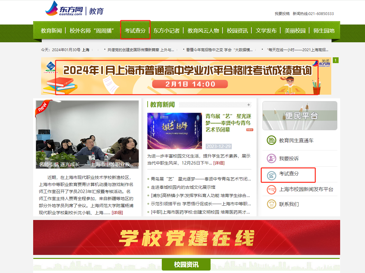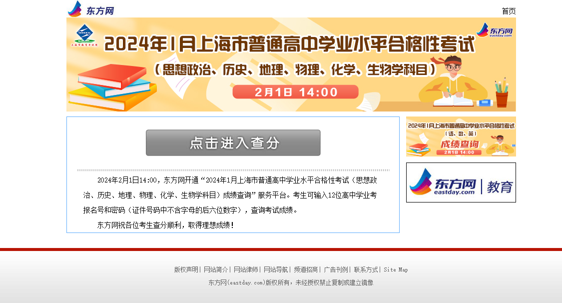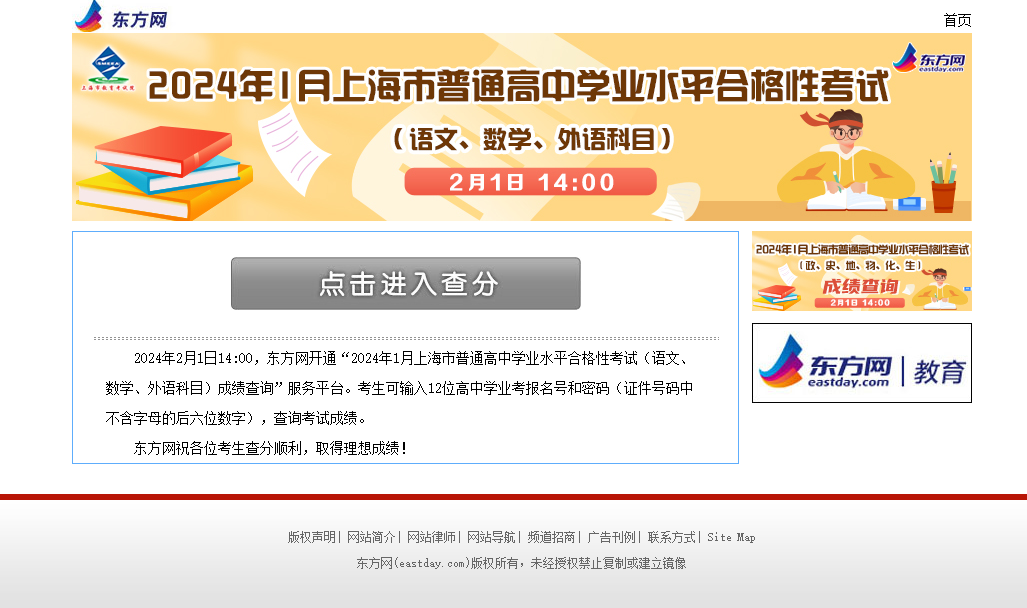 二、2024上海市高中合格性考试的查分入口