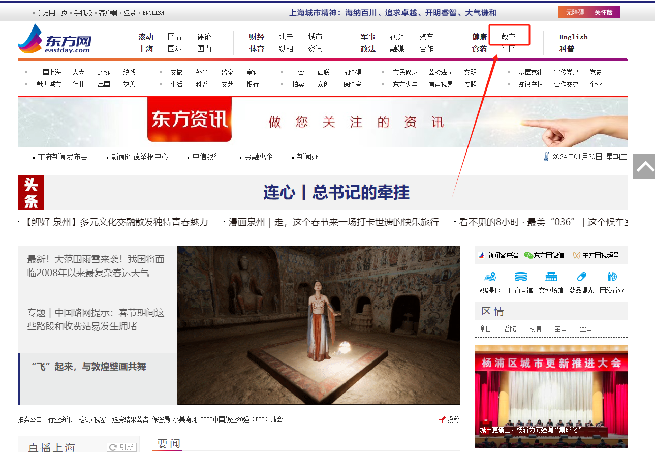 1.进入东方网,点击右上方的“教育”板块