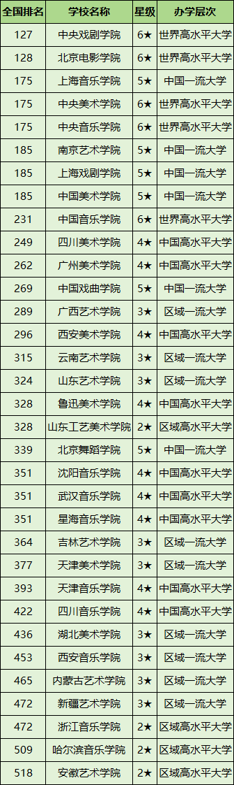 全国艺术类大学全部排名一览表汇总